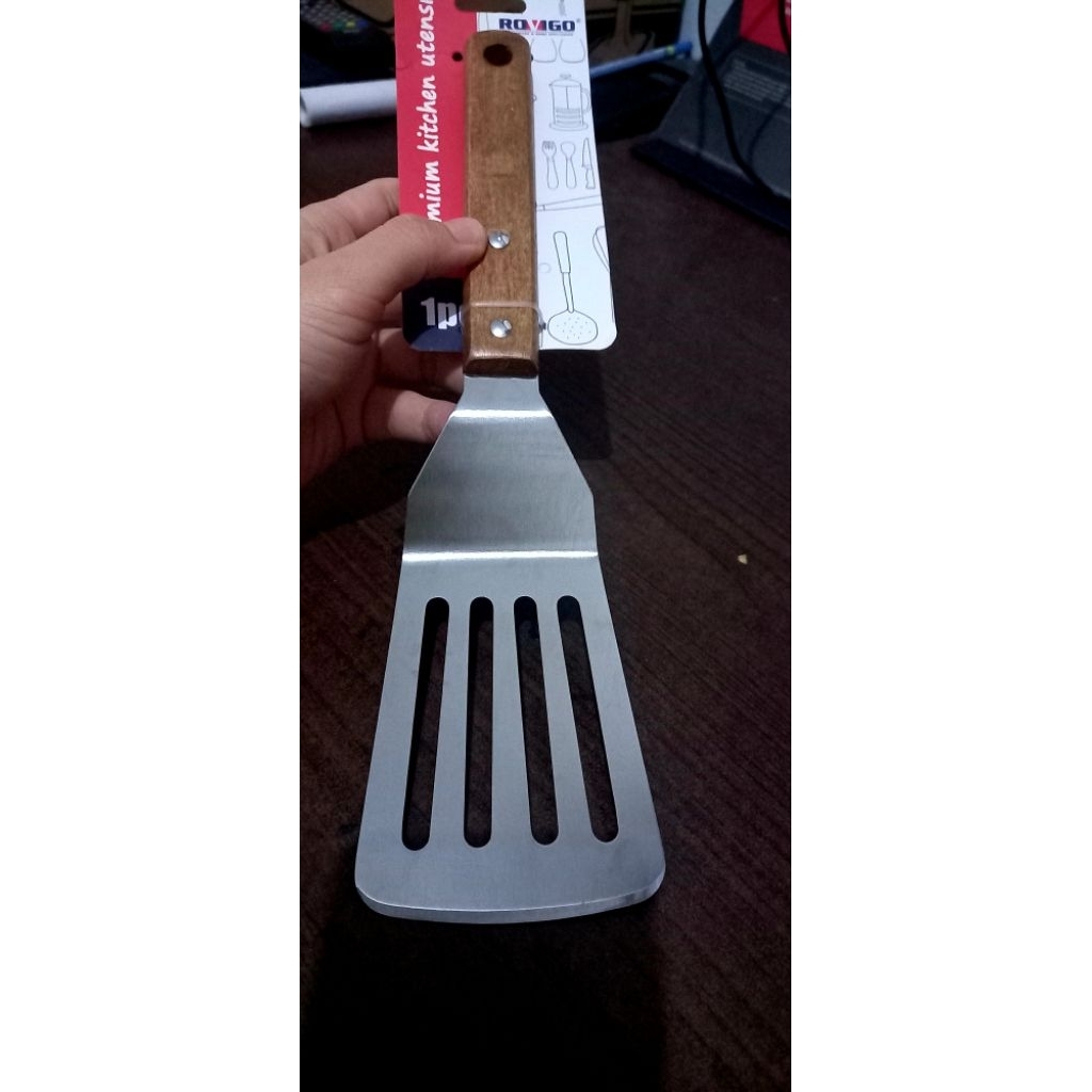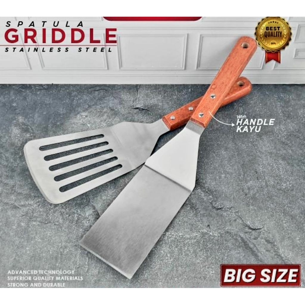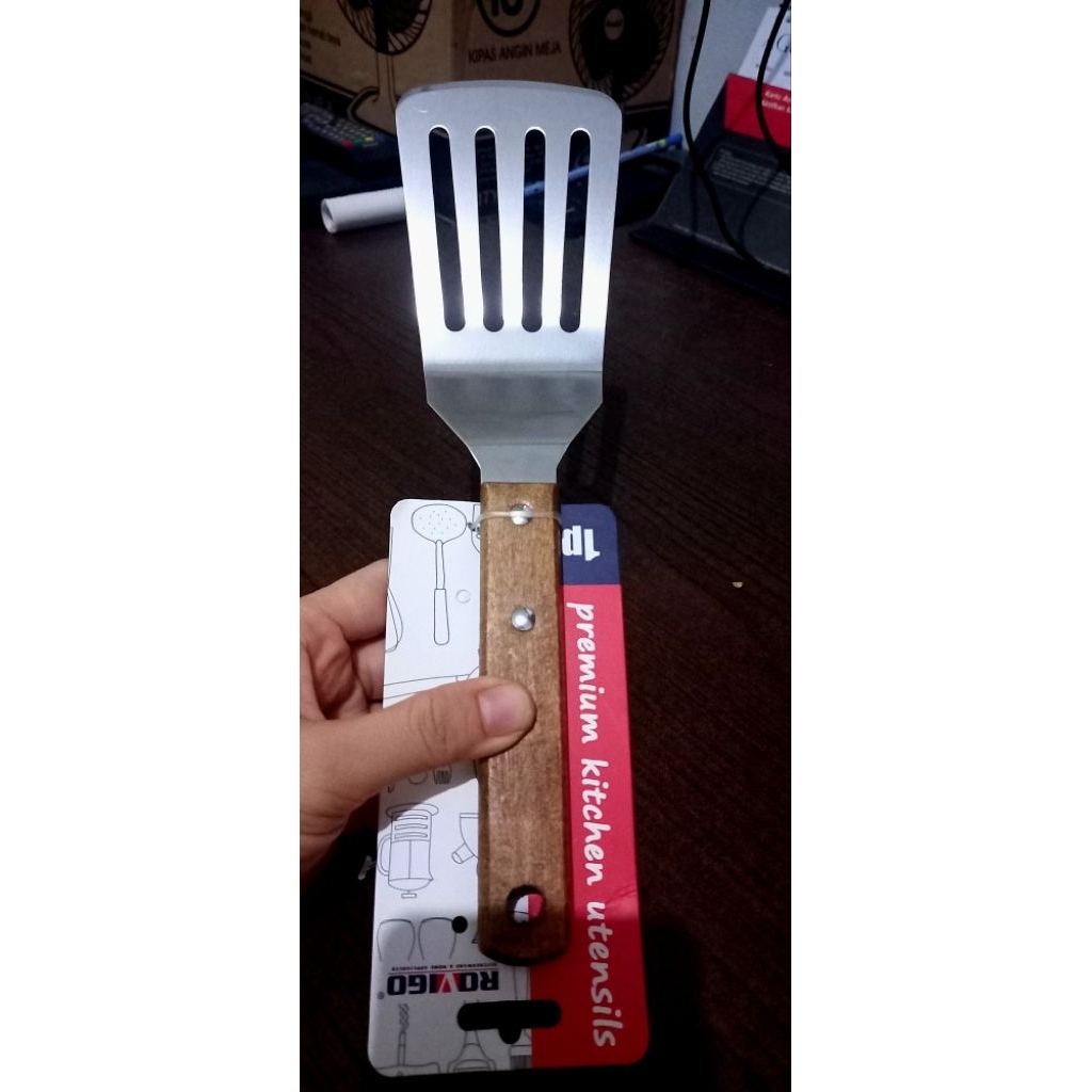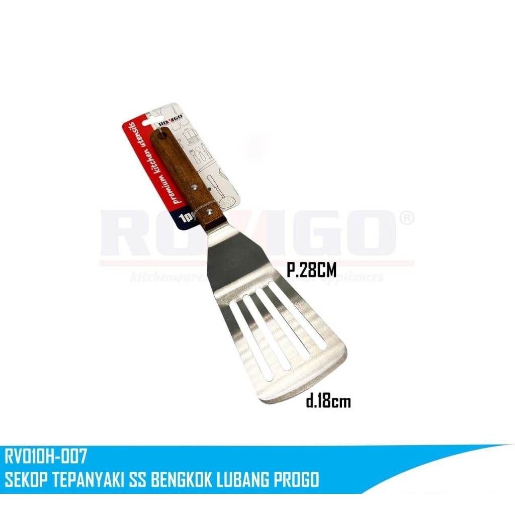 Spatula Griddle lubang Sekop tepanyaki lubang gagang kayu 28cm