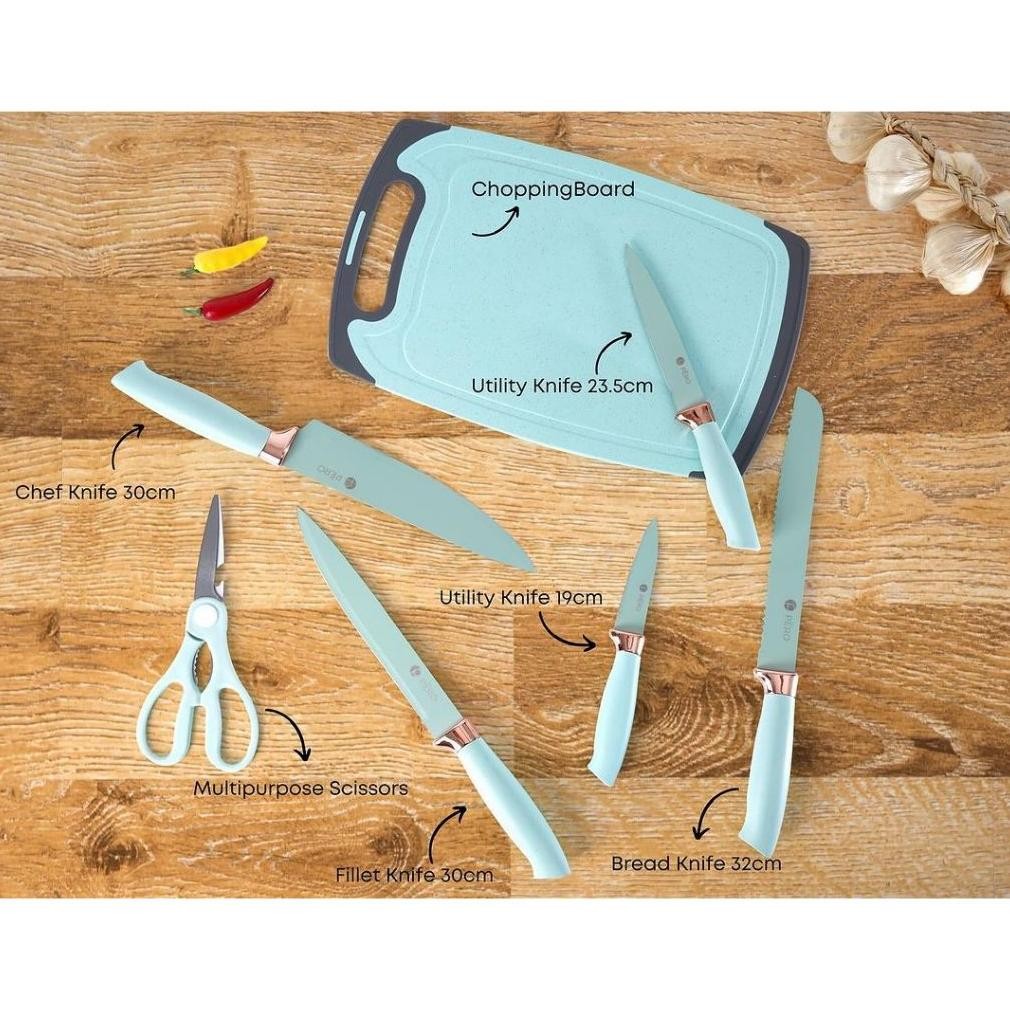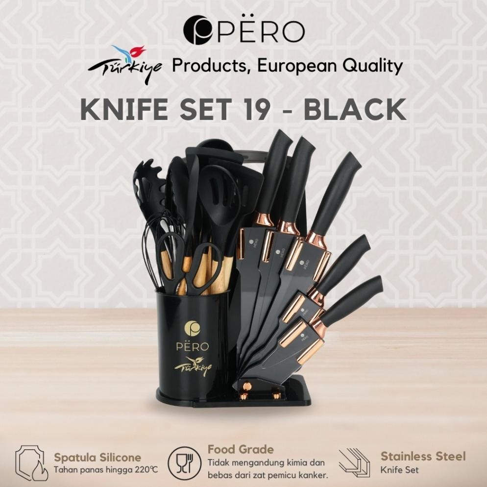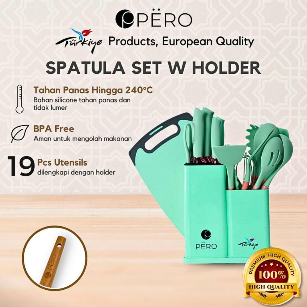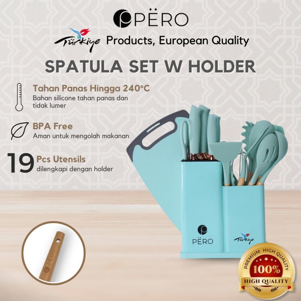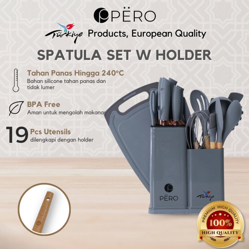 Terlaris Pero Set Of 19 Utensils Silicone Spatula & Knife With Holder / Peralatan Masak 19 In 1 Spatula Dan Pisau Set
