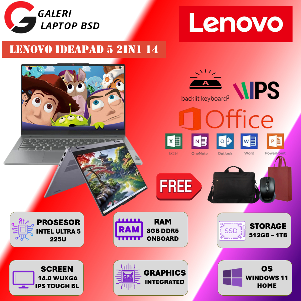 Laptop 2In1 Lenovo Ideapad 5 14 Intel Ultra 5 225U Ram 8GB DDR5 1TB Ssd Wuxga Ips Touch Windows 11
