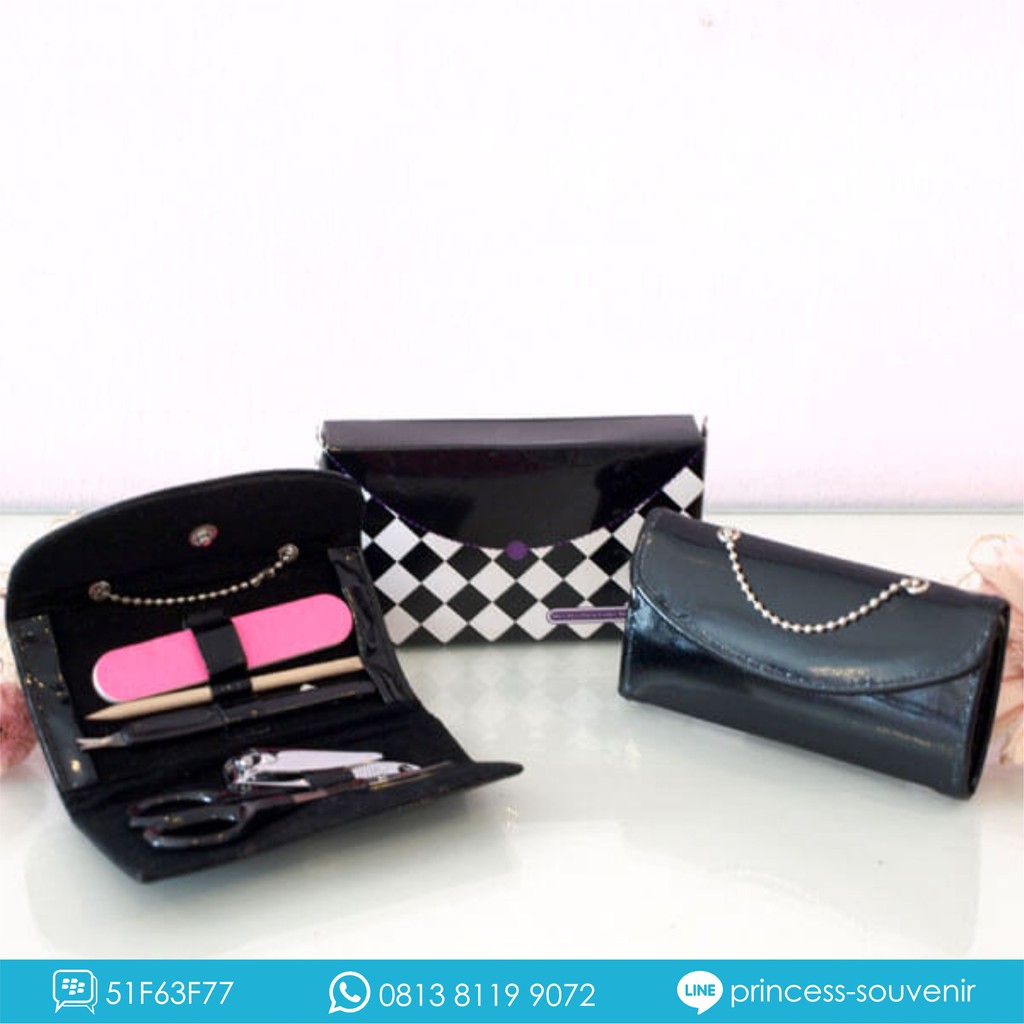 Souvenir Manicure Set Dompet Hitam Elegan – Gunting Kuku & Nail Art | Free Box