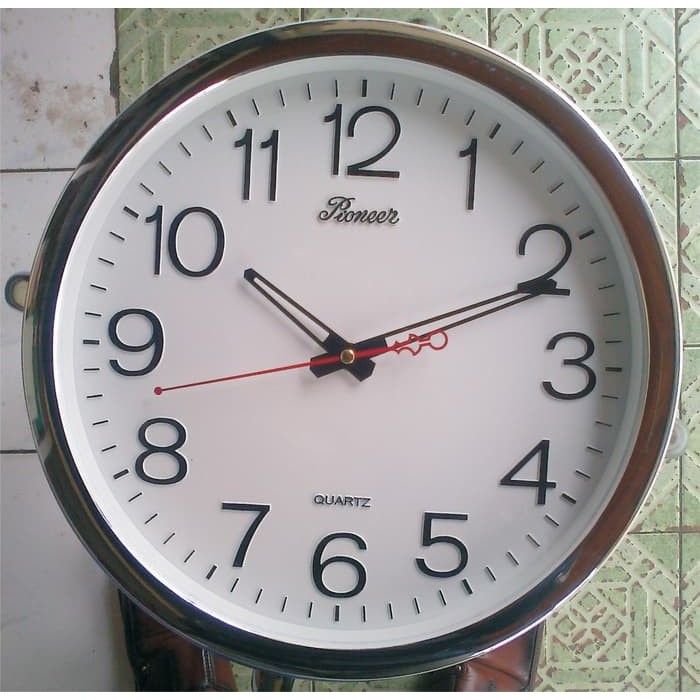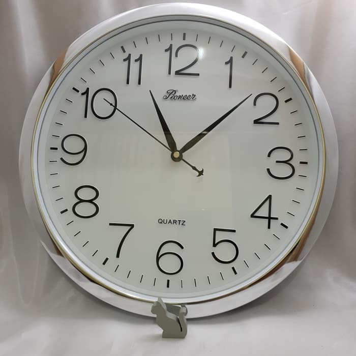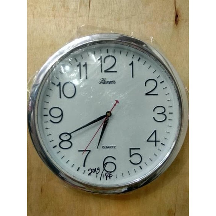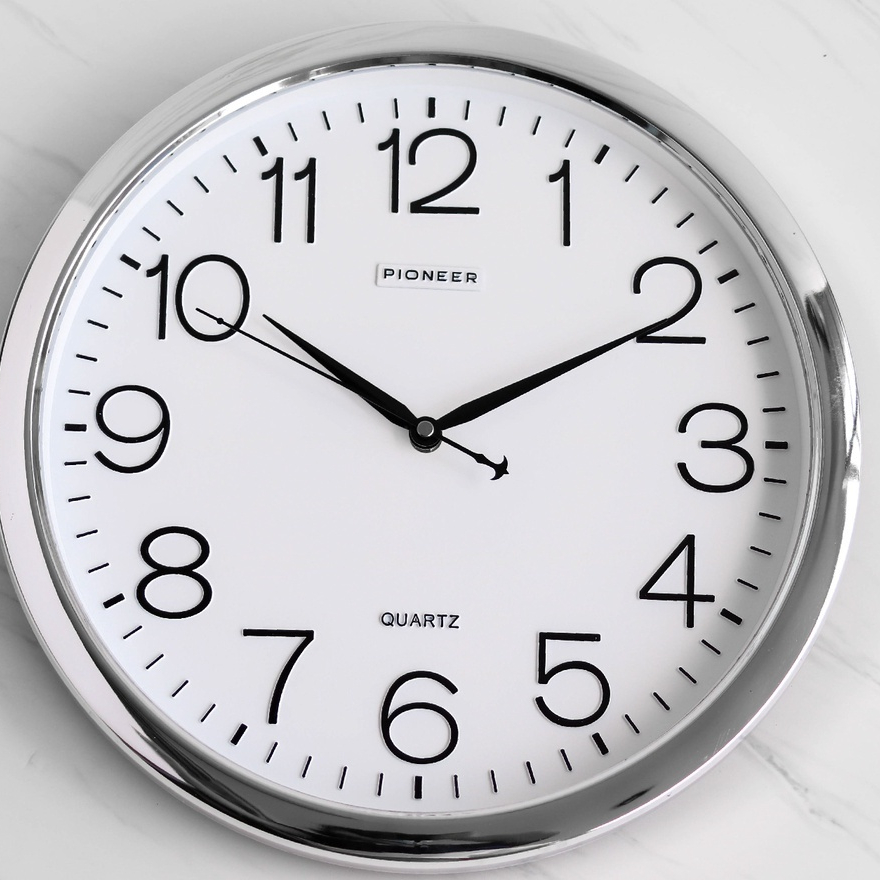 Jam Dinding Silver Putih Pioneer CR2019 CR 2019 Krum Chrome Mesin Kuat