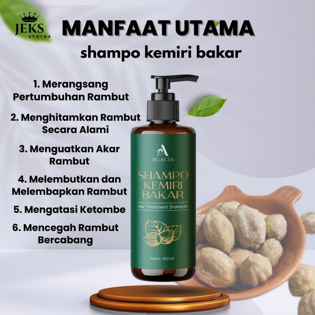 AGACIA SHAMPOO KEMIRI BAKAR 100ML - Penumbuh Rambut Menebalkan Hair Treatment Anti Rontok Dan Ketombe Penghitam Uban Penebal Rambut Shampo Non SLS untuk Rambut Sehat & Lembut Nourishing Long Life Shampoo Pembersih Pencegah Kerontokan HairCare Penguat Akar