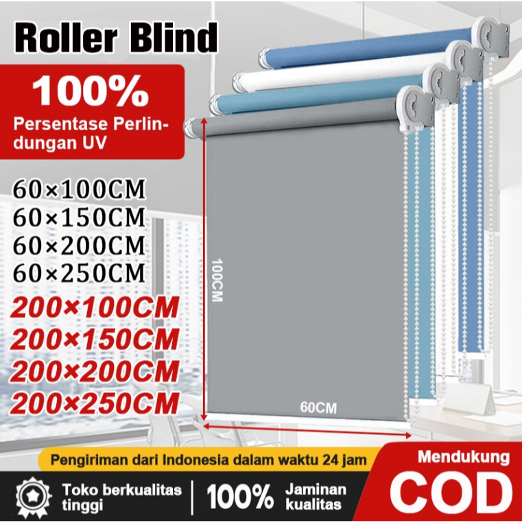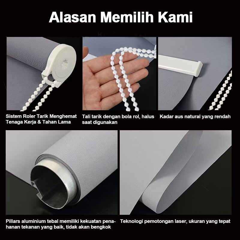 Roller Blind Blackout 100% - Anti UV & Pengatur Cahaya, Anti Jamur Privasi Anda, Desain Minimalis untuk Cocok Kamar Kantor/Tidur, Standar Ukuran & Tersedia Custom