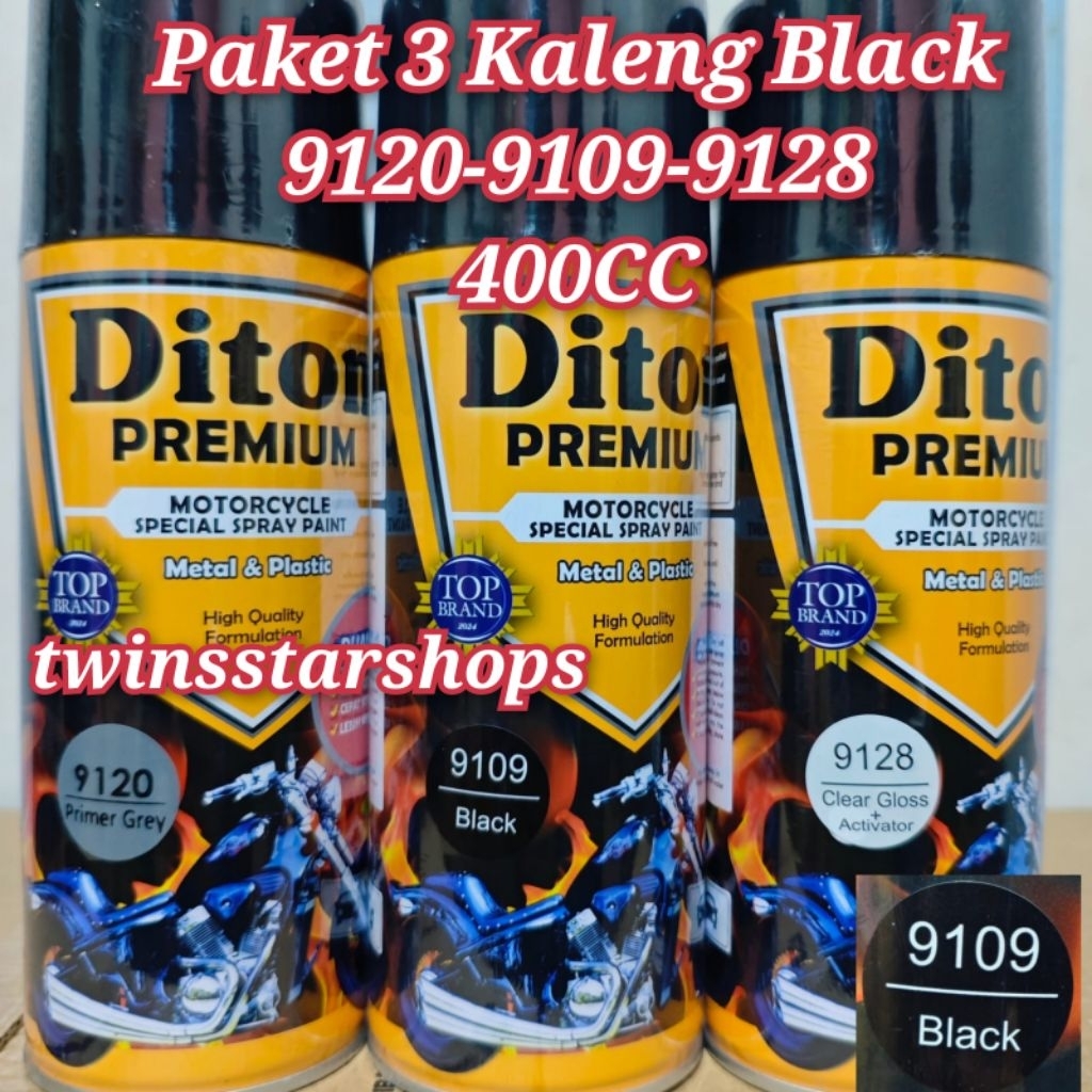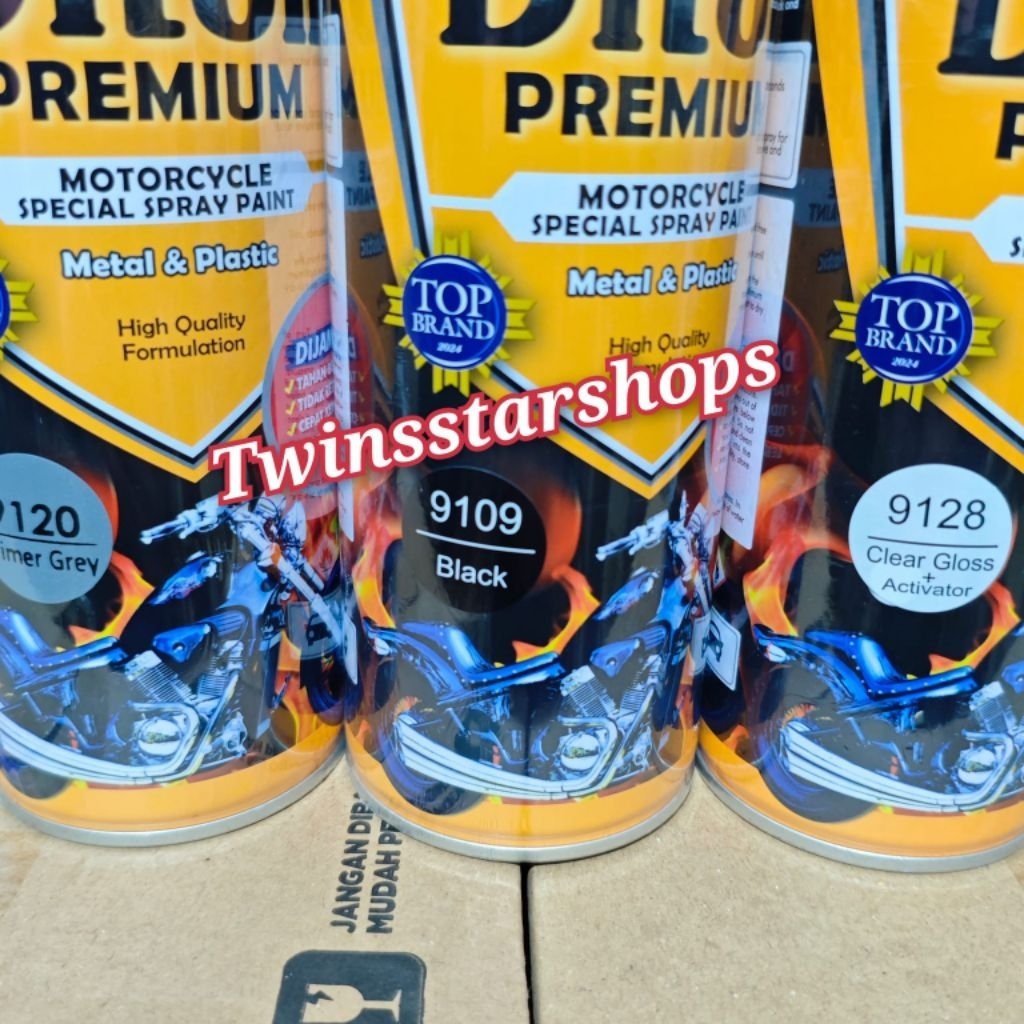 Pilok Pylox Cat Diton Premium Paket 3 Kaleng Hitam Blck 9109 Primer Grey 9120 Clear 9128 Glosy 400cc