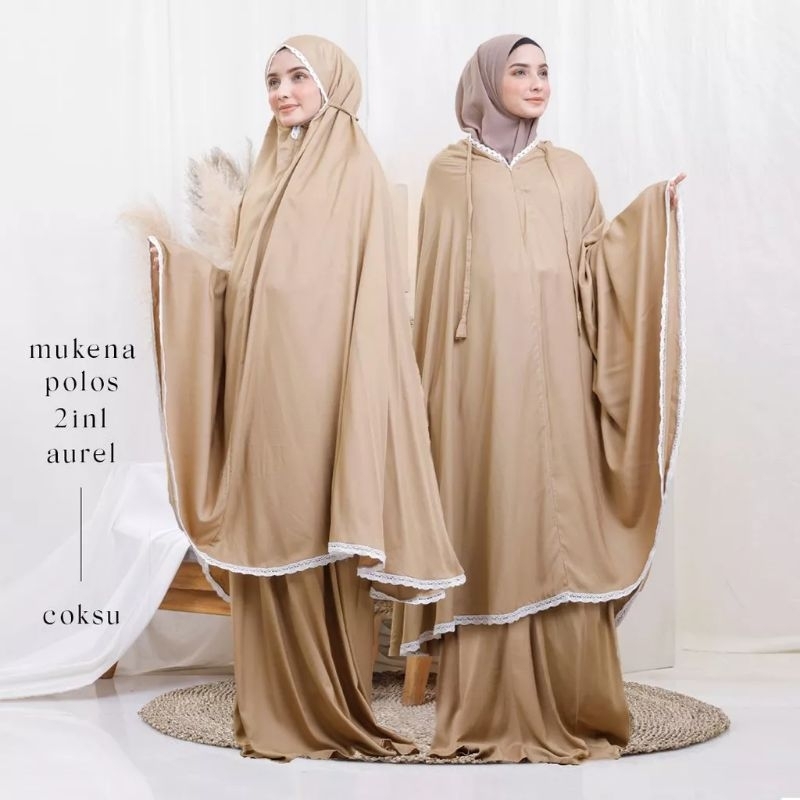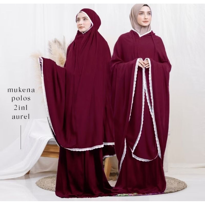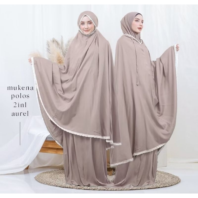 Mukena travelling AUREL 2in1/ mukena dewasa polos 2in1