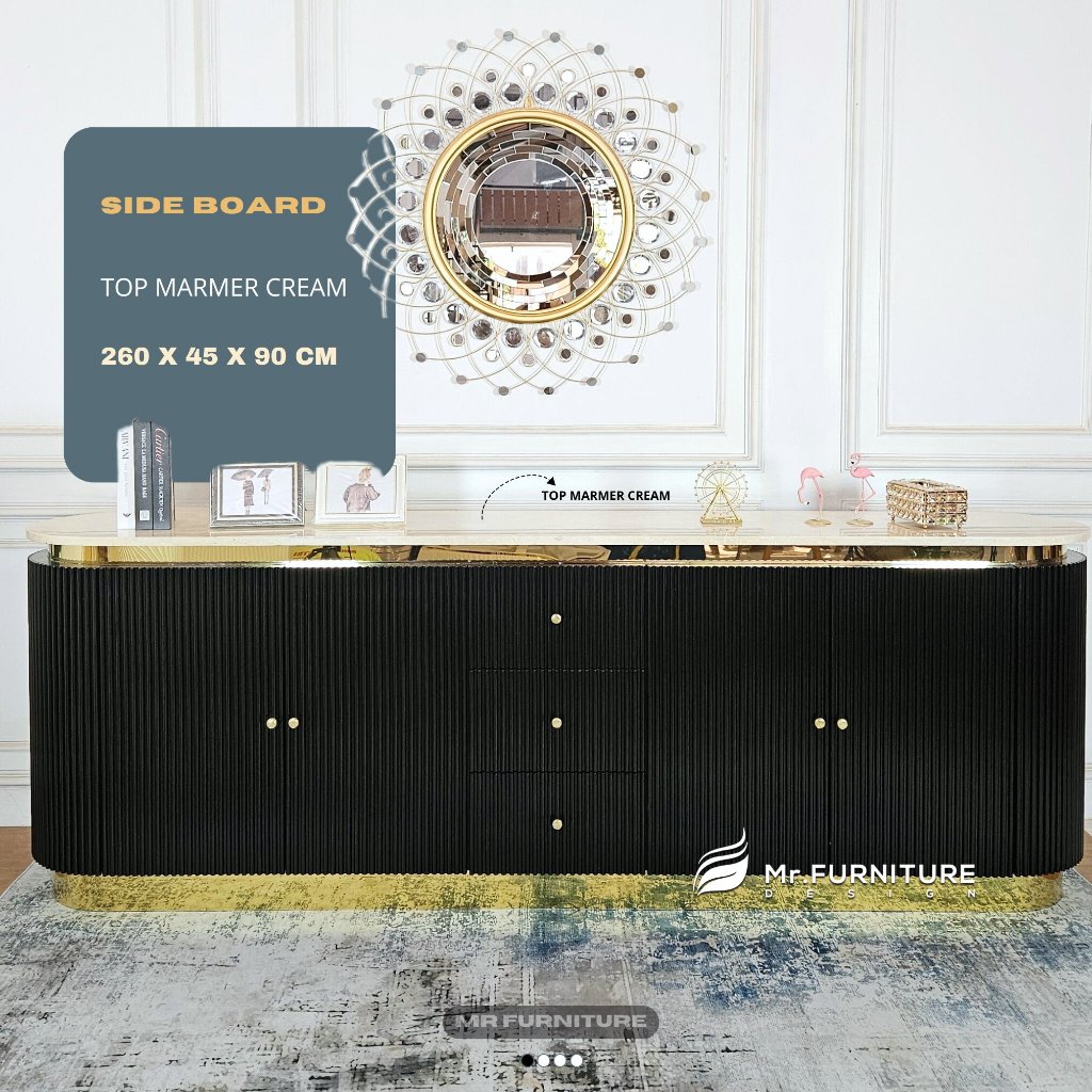 aston sideboard salur top marmer krem 260x45x90 cm