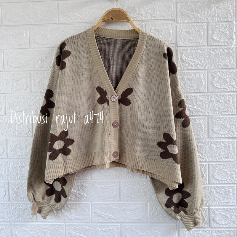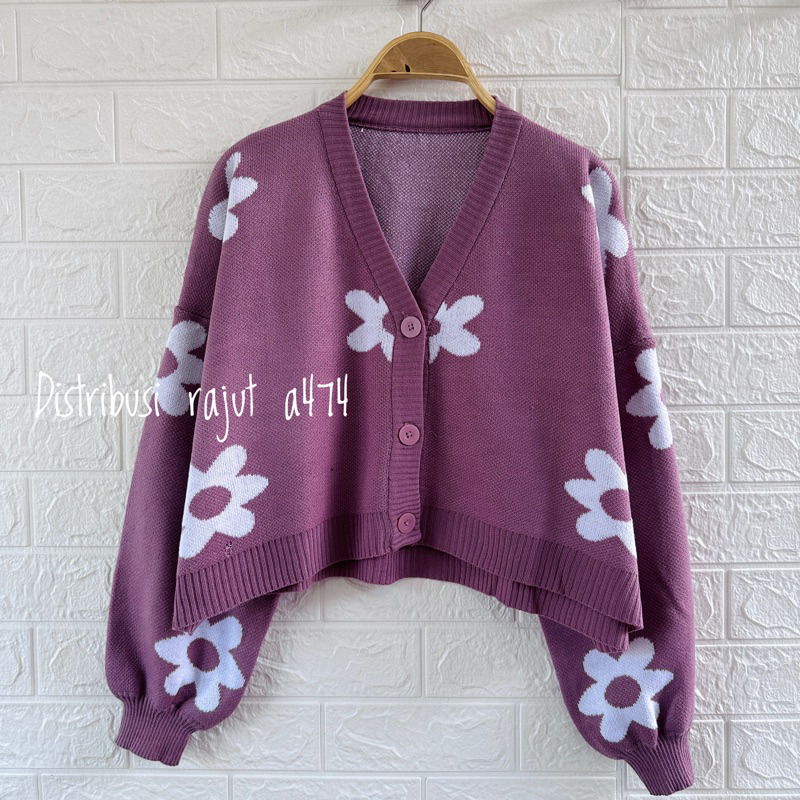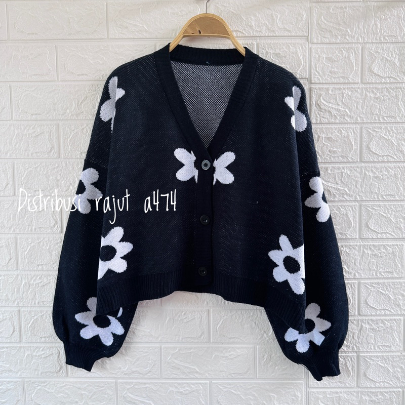 KANYA CARDIGAN RAJUT MOTIF FLOWER ATASAN LENGAN PANJANG