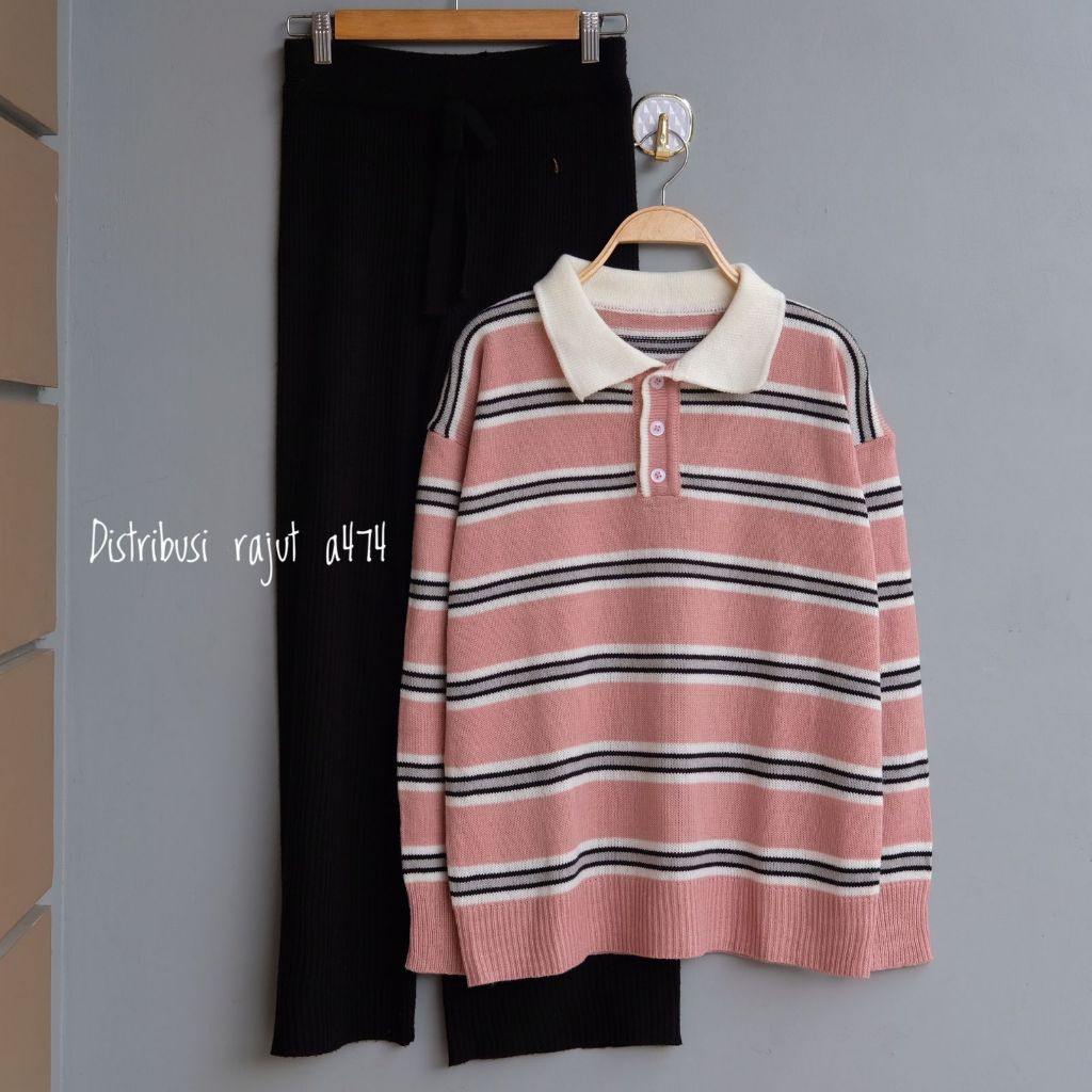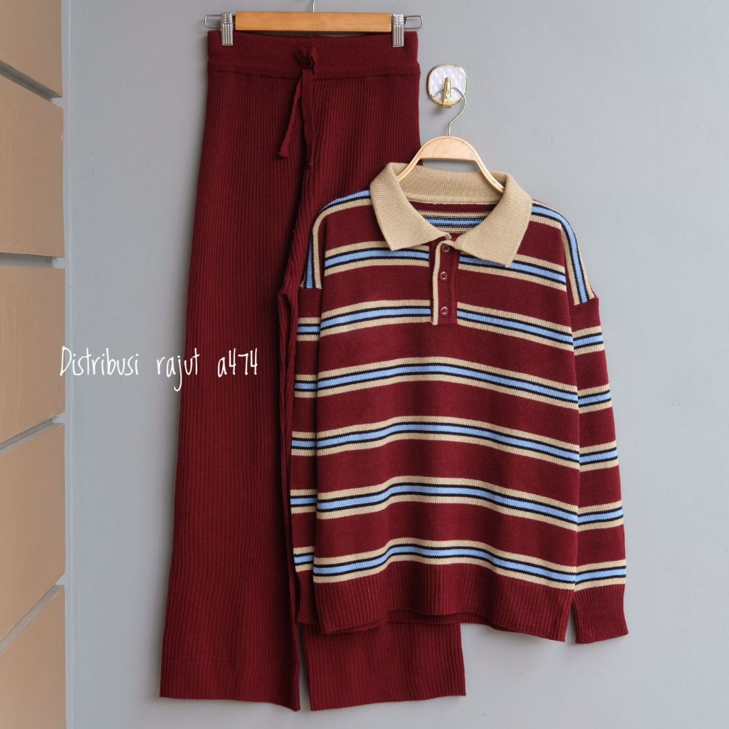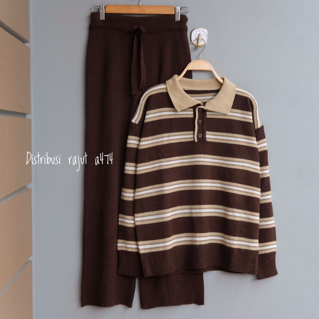 Oneset Elodia Sweater Polo Rajut Setelan Celana Kulot Rajut Wanita