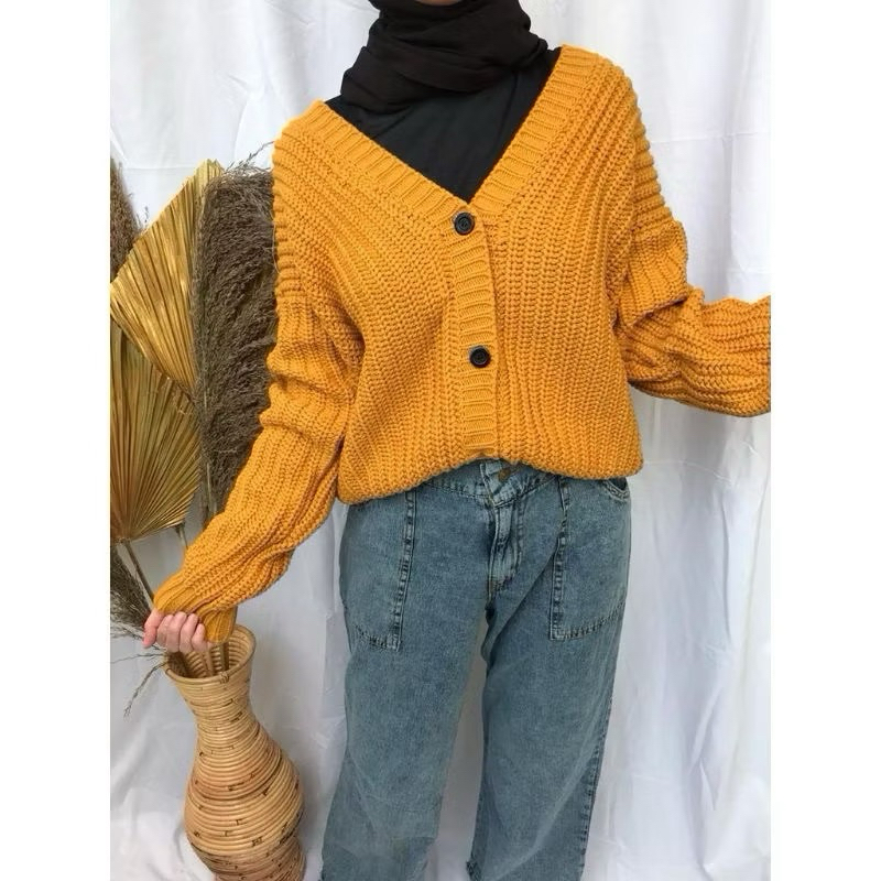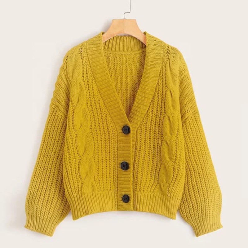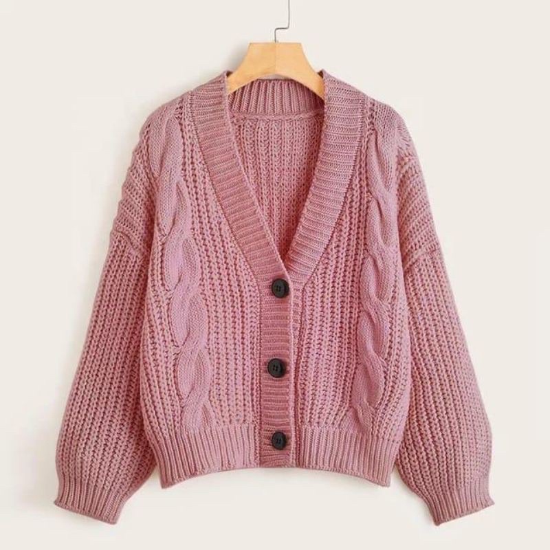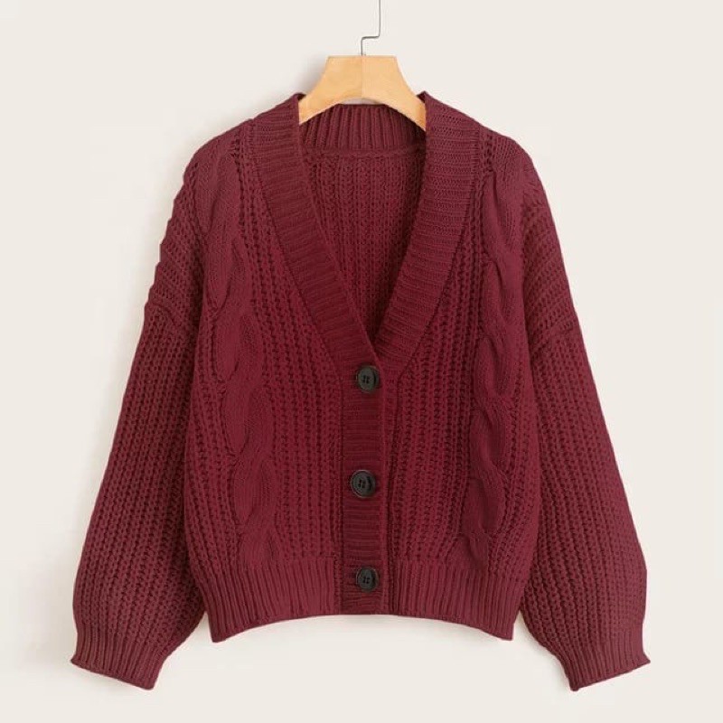 CARDIGAN SEMI CROP OUTER RAJUT EIREEN CABLE EKSPORT OVERSIZE 7 GAUGE DR A474