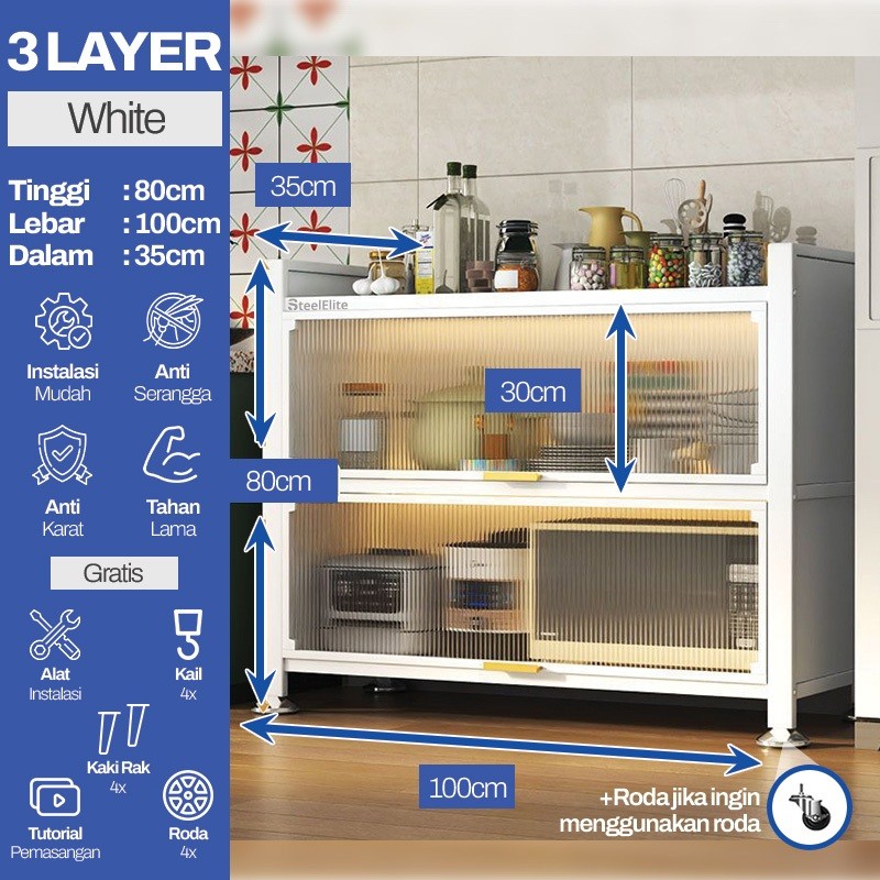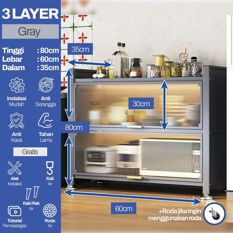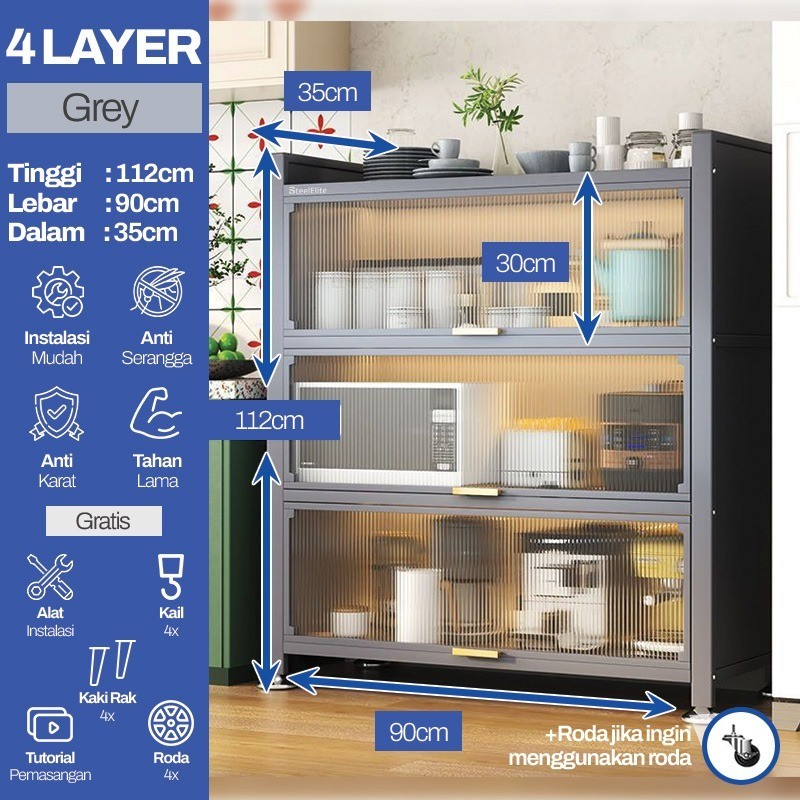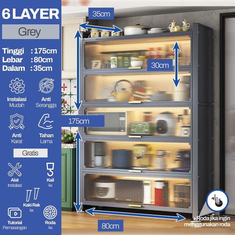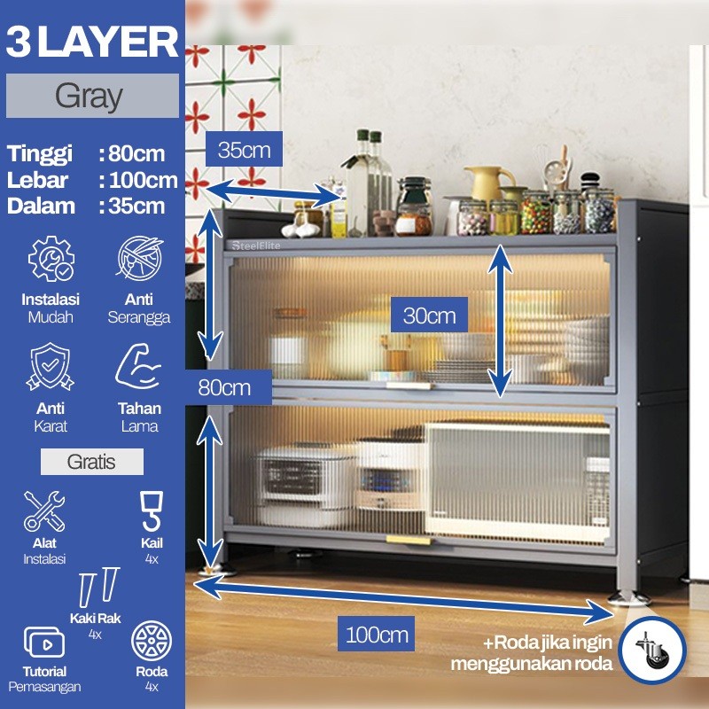 CHEFMOOD RAK PIRING MINIMALIS LEMARI DAPUR LEMARI PIRING ALUMINIUM RAK DAPUR BESI SERBAGUNA LEMARI DAPUR BESI