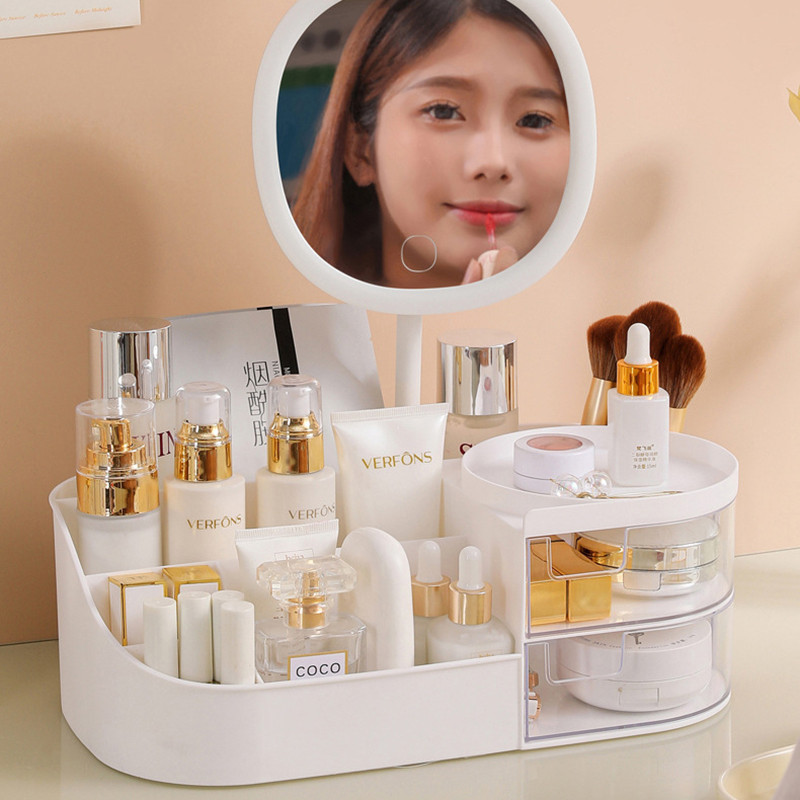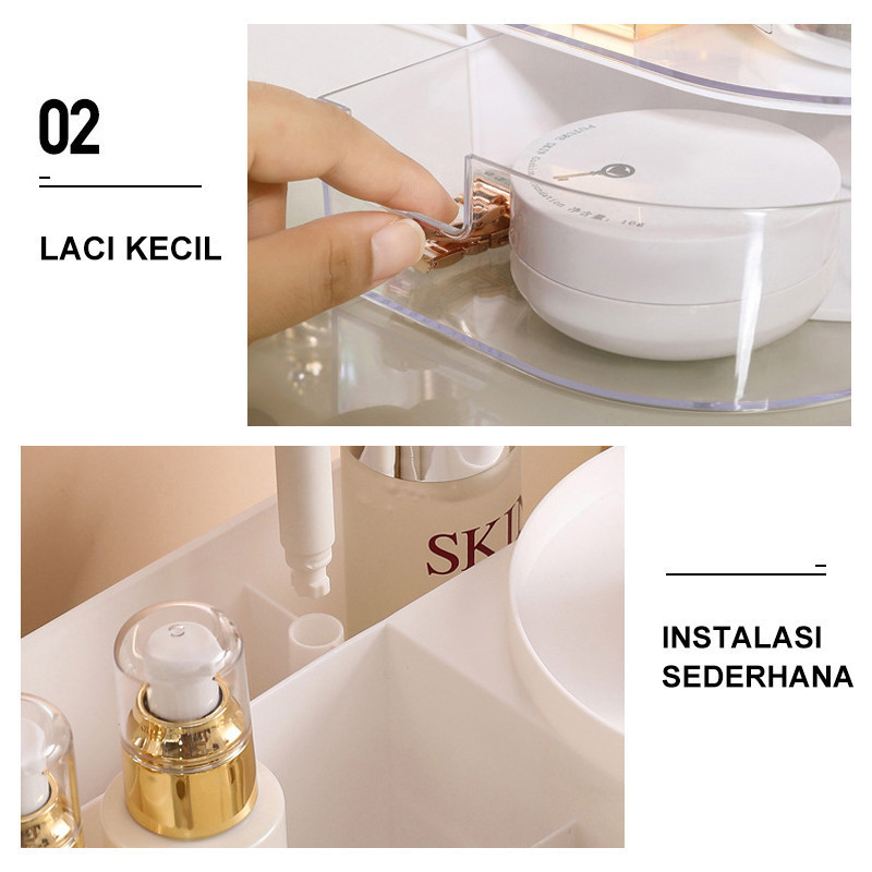 Rak Kosmetik + 3 Warna Cermin Makeup Rak Kosmetik Drawer Rak Kosmetik Aesthetic Cermin