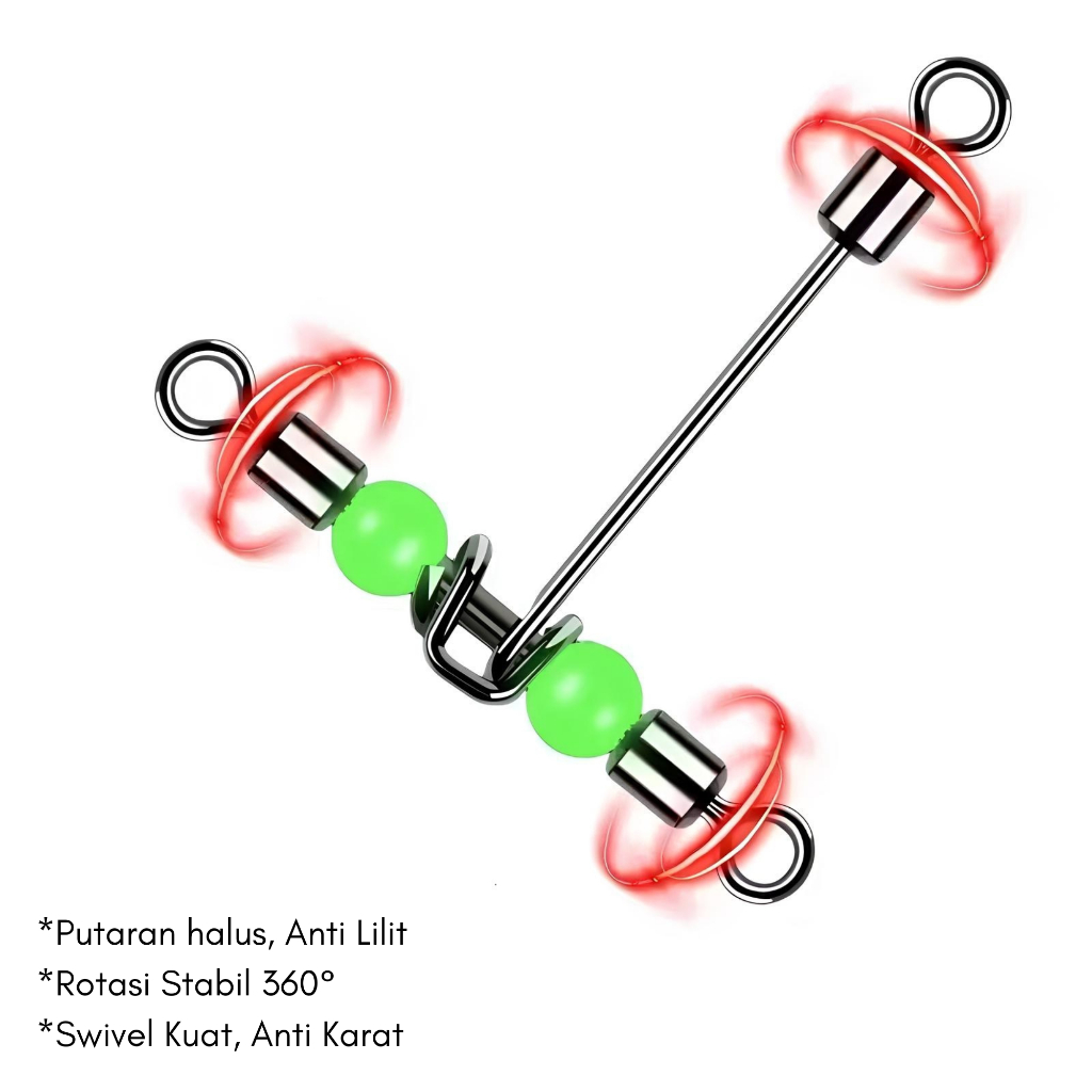 Raypower 3 Way Swivel T Swivel Pancing Anti Lilit Stainless Steel Glow in The Dark Swivel 3 Arah