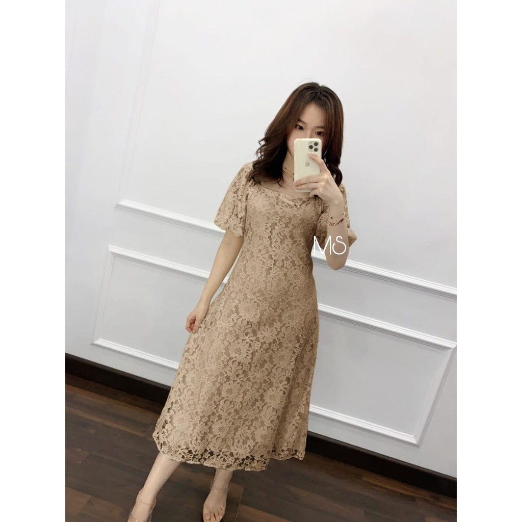 DRESS SCARLET BRUKAT / DRESS BRUKAT WANITA warna putih Lilac ungu hitam / Dress Sabrina brokat corneli jumbo LD110CM premium / dress pesta natal wedding dress kondangan / gaun pantai summer JUMBO XXL