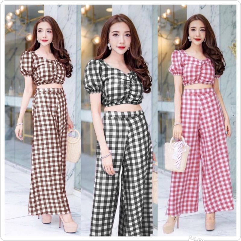 SET CROP KULOT Setelan wanita Korean style terbaru baju setelan crop top square ft