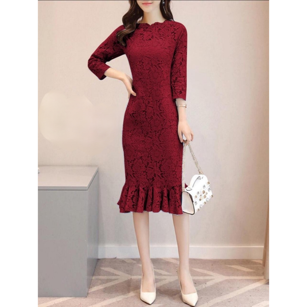 Dress Brukat Wanita Bodycon Dress Rumbai Lengan Panjang Gaun Pesta Brokat Mewah Mini Dress Natal Cantik Gaya Korea zh Gaun Press Body