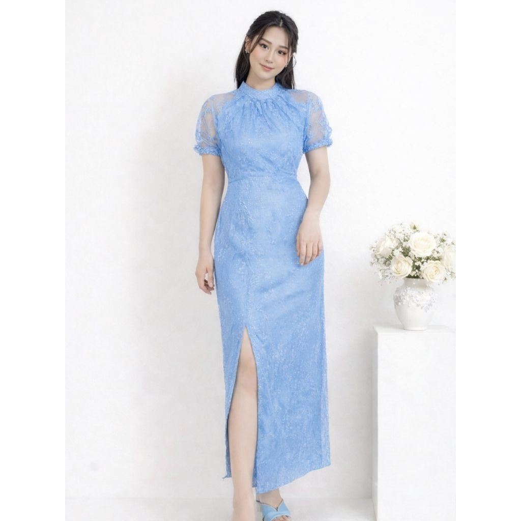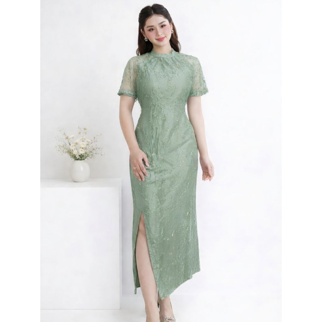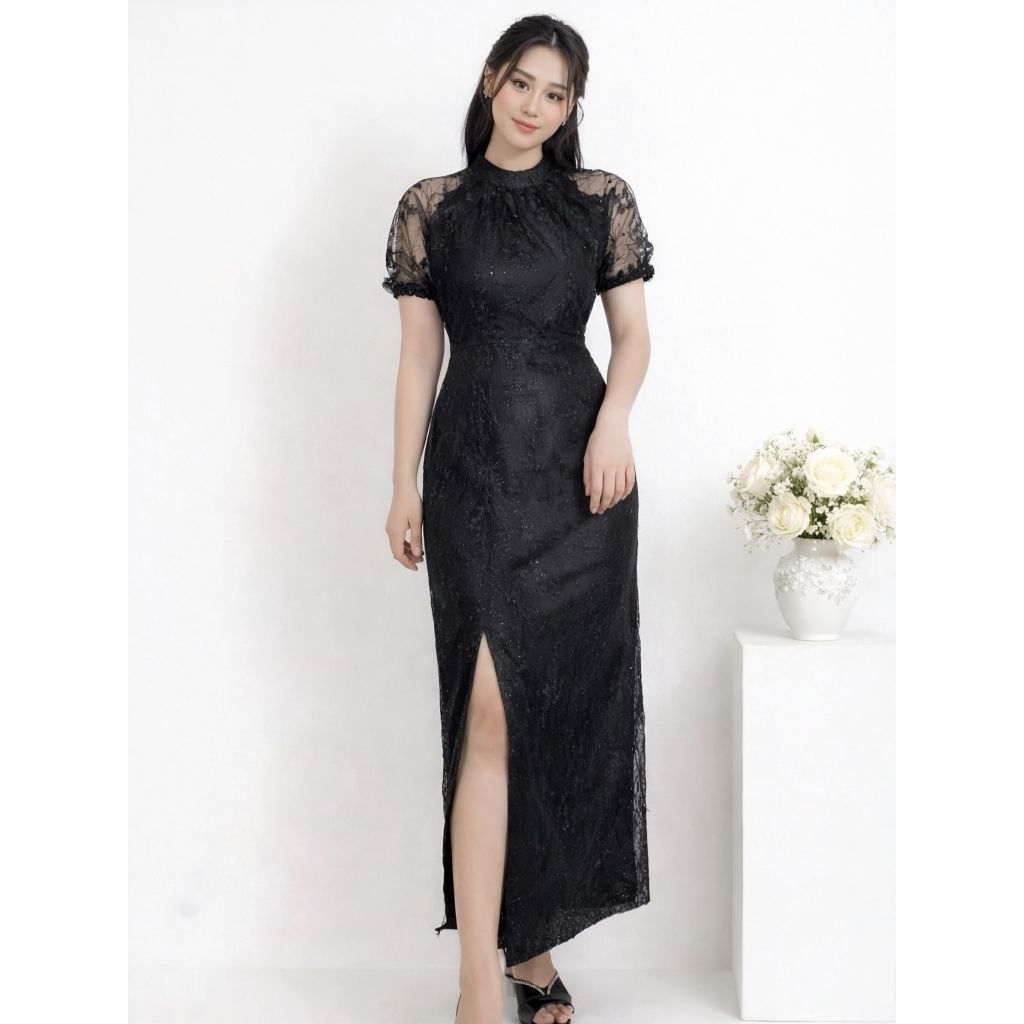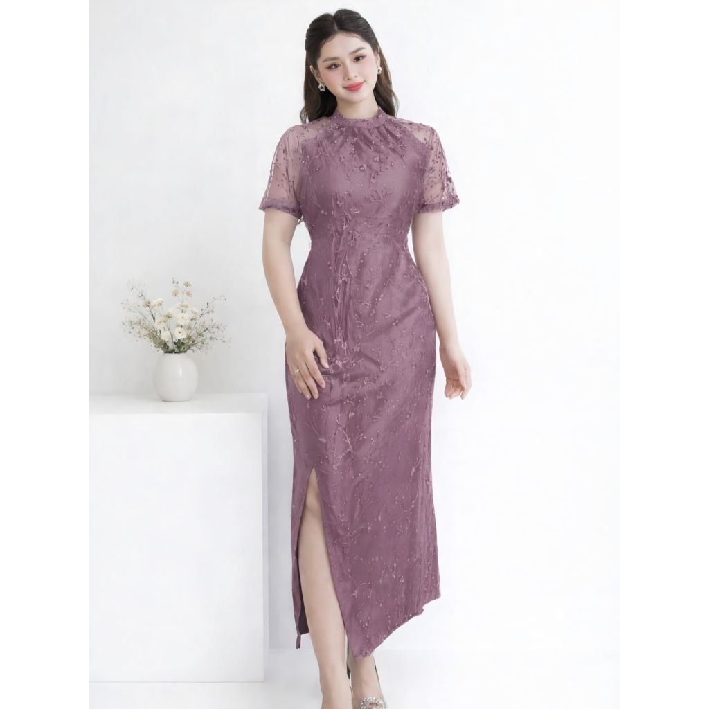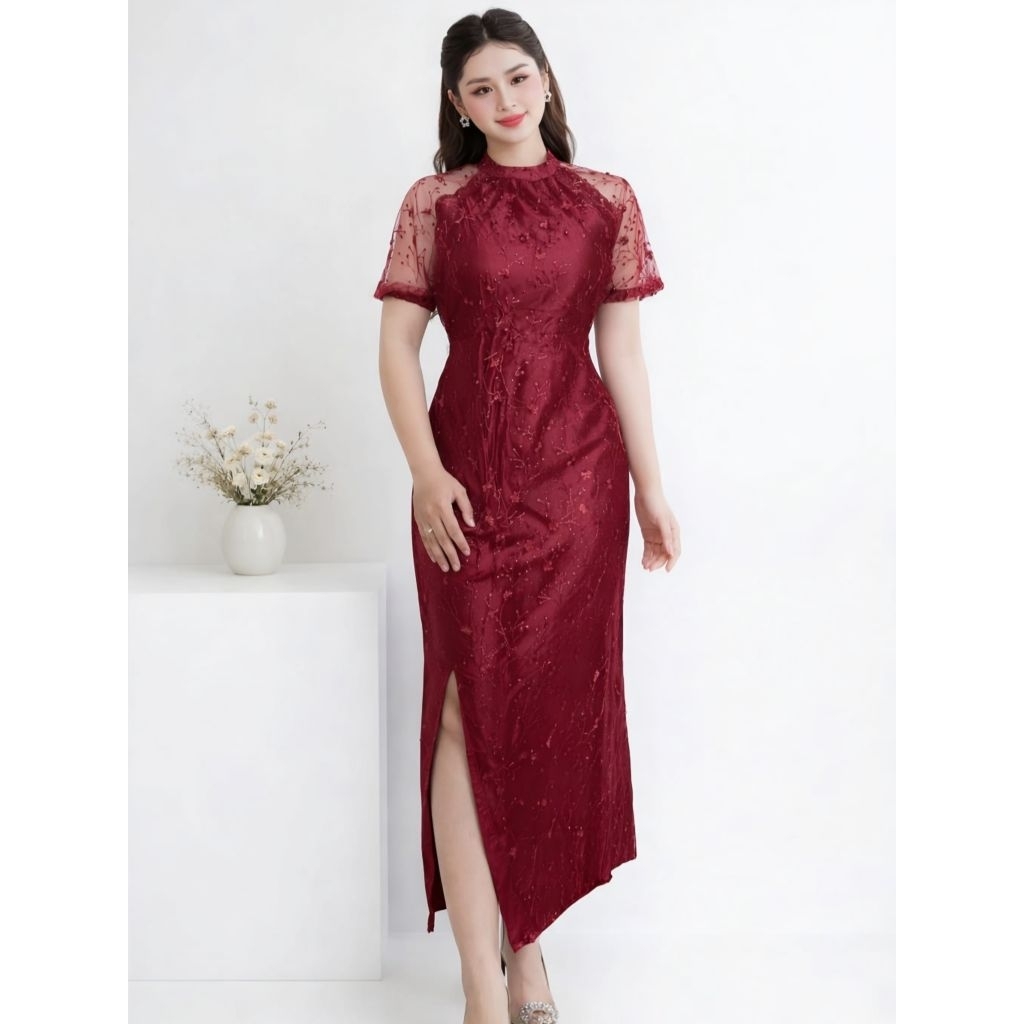 Dress Belah Paha Gaun Brokat Pesta Elegant Mewah Slit Dress Satin Velvet Bodycon Dress Natal Aurelia Rd
