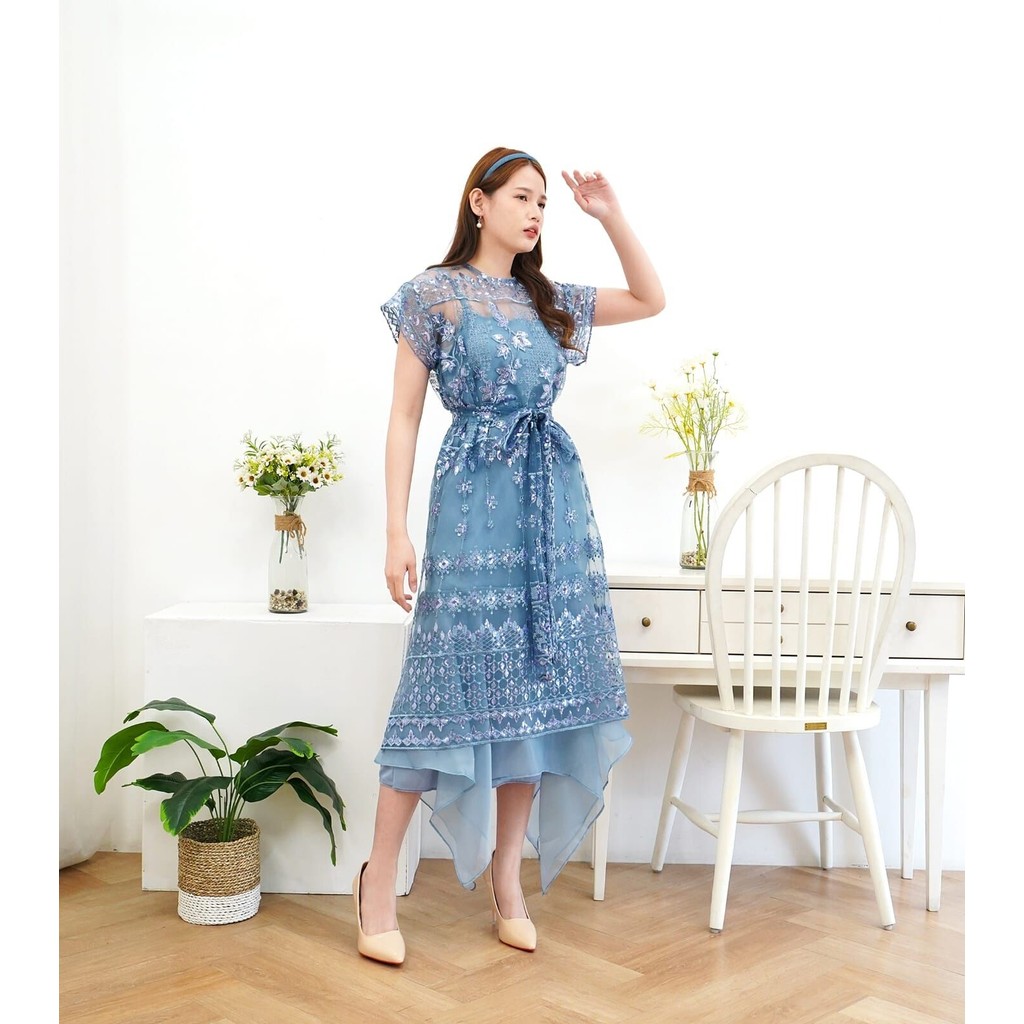 Gaun Pesta Warna Denim Elegan Terbaru – Dress Kondangan, Bridesmaid, Kebaya Modern, Dress Panjang & Midi Premium Bahan Berkualitas
