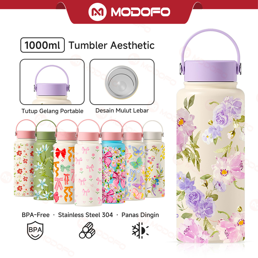 MODOFO Tumbler Stainless Botol Minum Aesthetic Tumblr 1000ml Lucu Tumbler Tahan Panas Dingin 24 Jam Kopi Termos Air Panas Hampers