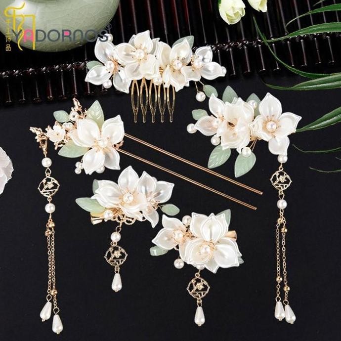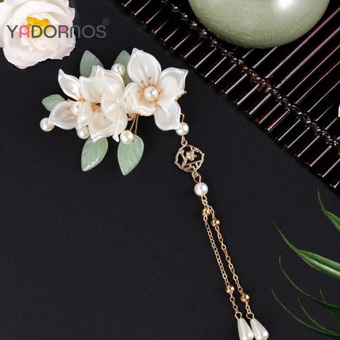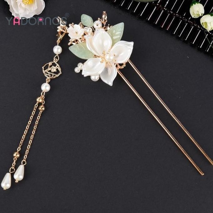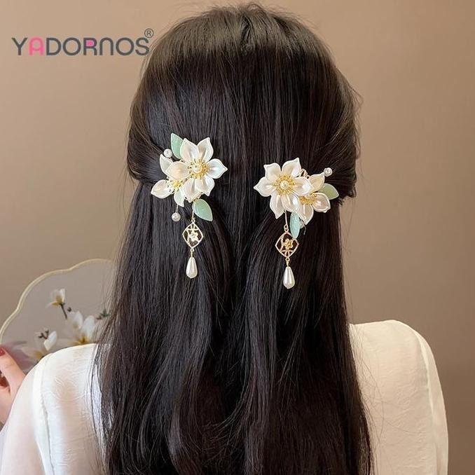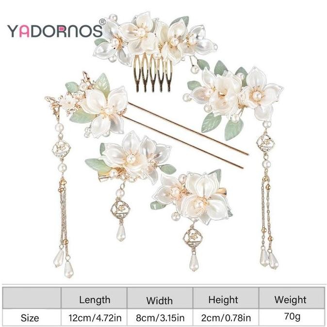 new YADORNOS Set Aksesori Rambut Sumpit Rambut Cina Tongkat Rambut Bunga Mutiara Hanfu Tongkat Rambut Rumbai Panjang untuk Hadiah Novel Teman Pacar Istri
