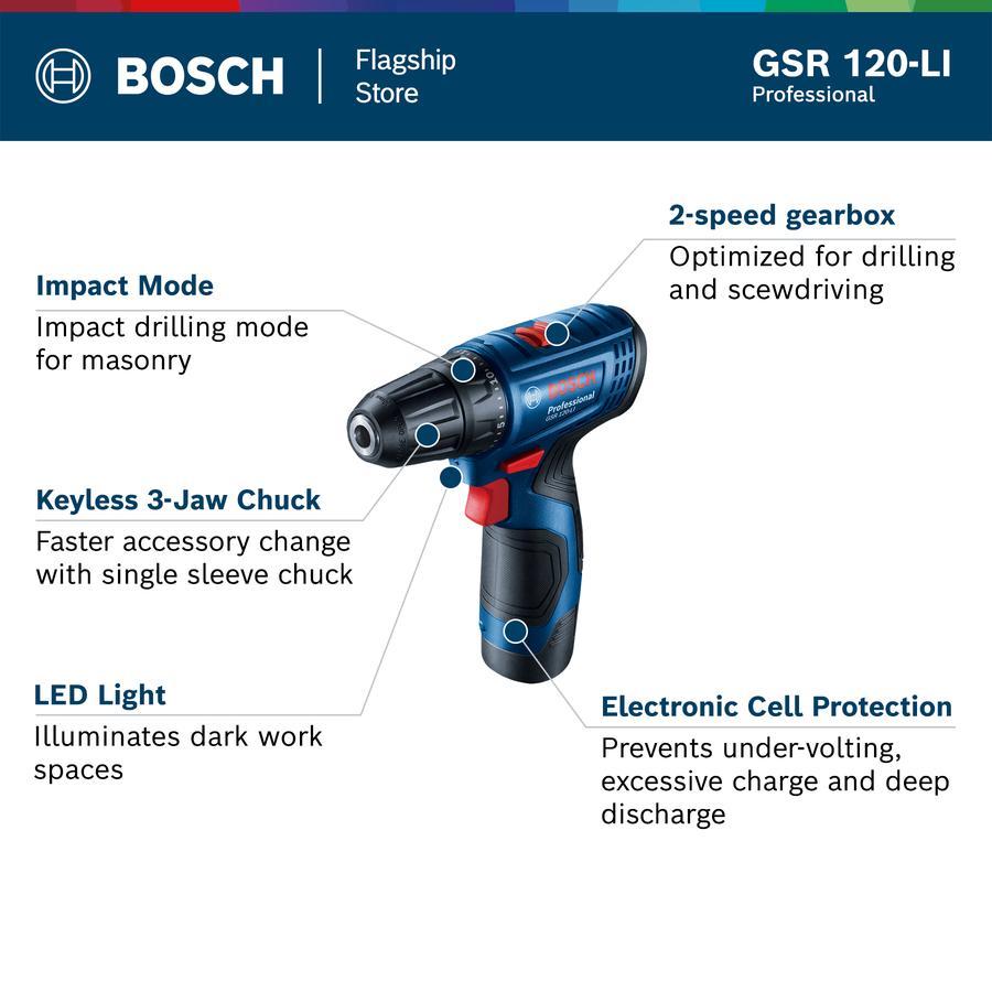 BOSCH GSR 120 Bor Besi Cordless 12V / Mesin Bor Baterai 12 Volt 10 MM