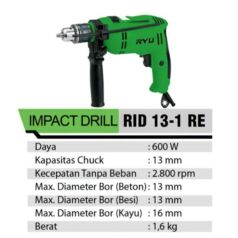 RYU RID 13-1 RE Mesin Bor Tembok 13 mm / Mesin Bor Listrik Tembok 13mm