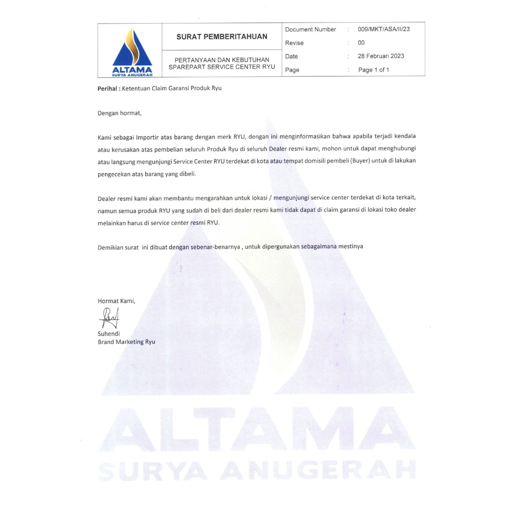 Garansi tiba 11 Mar