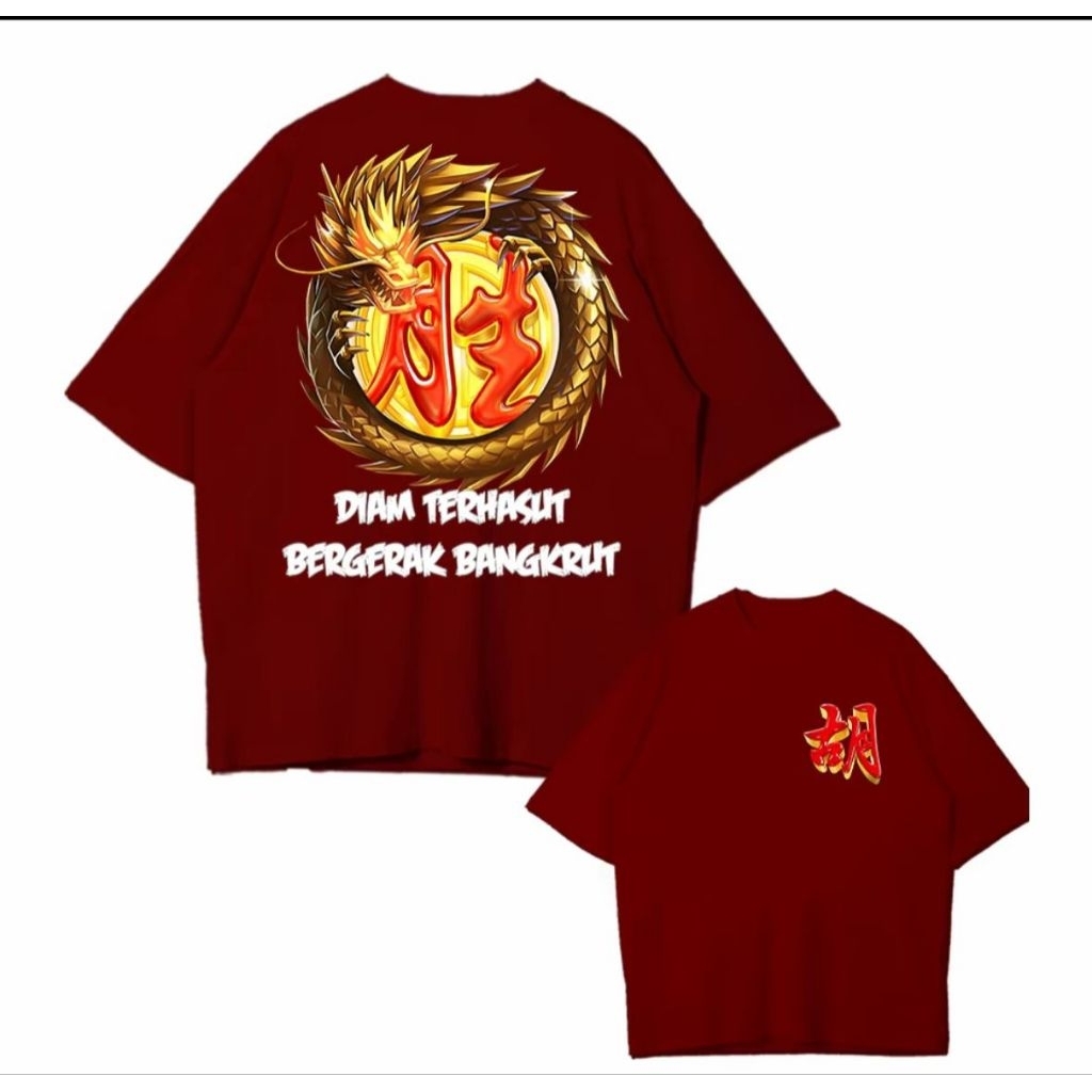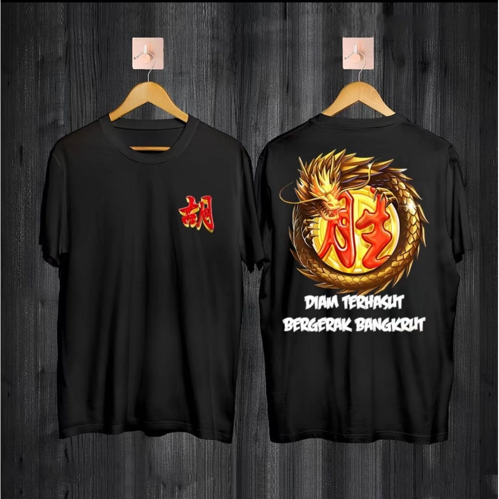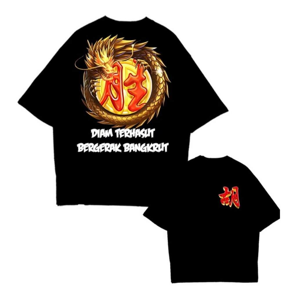 Kaos oblong cowo cewe motif mahyong diam terhasut bergerak bangkrut naga hitam lilit terlaris kaos viral