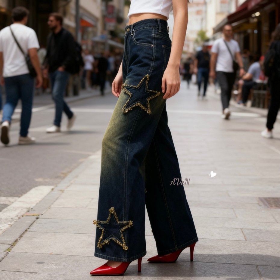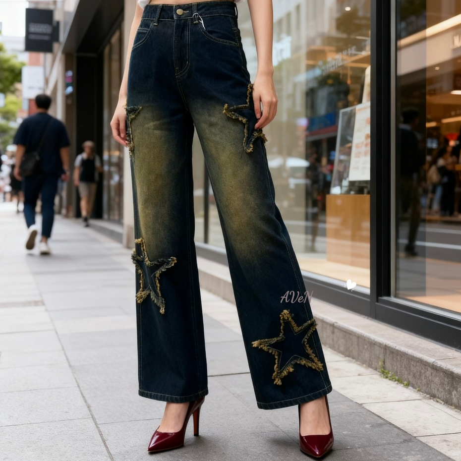 NEW--Celana Jeans Baggy Wanita Korean 8868 – Motif Bintang Dark blue | Celana Panjang Baggy Baggy | Korean style |COD|