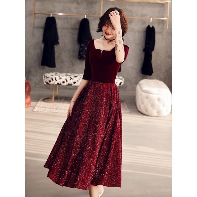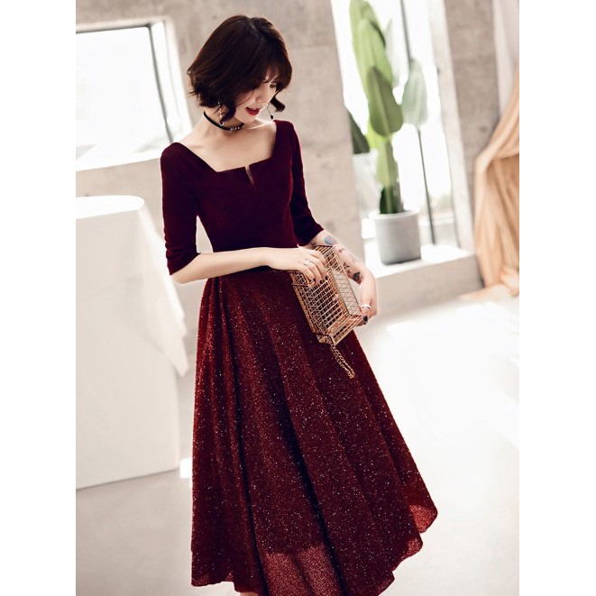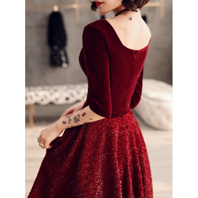 Gaun party Student Formal Dress Short Sleeve Sexy Red dress party