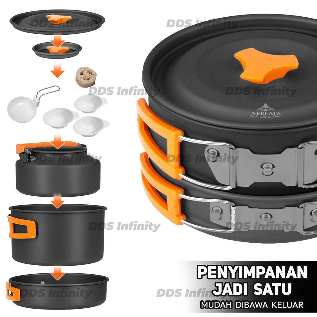 Alat Masak Camping Cooking Set Camping Panci Teko Ds308 Original Terpercaya
