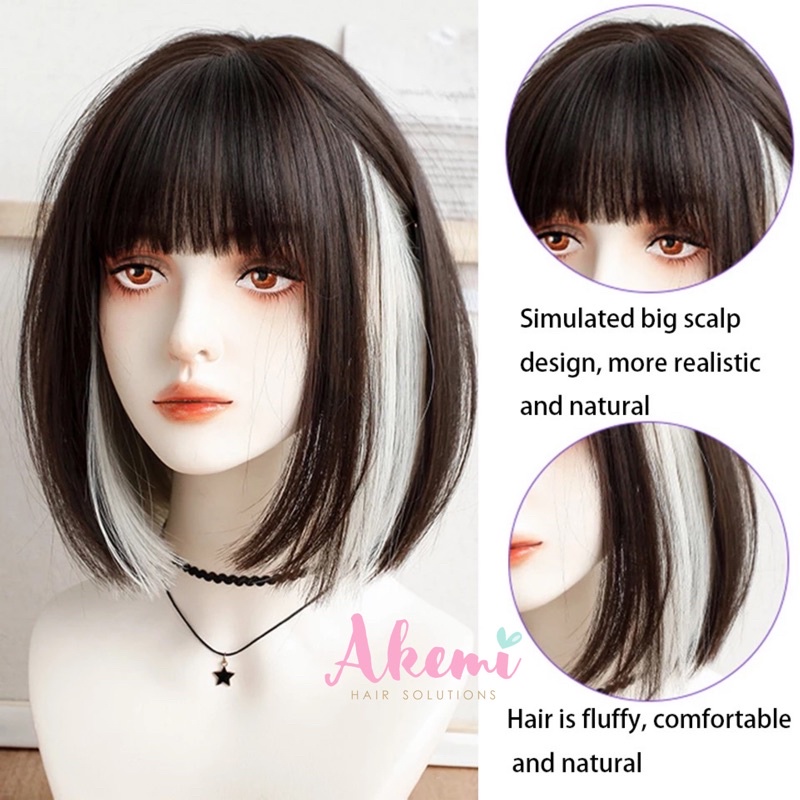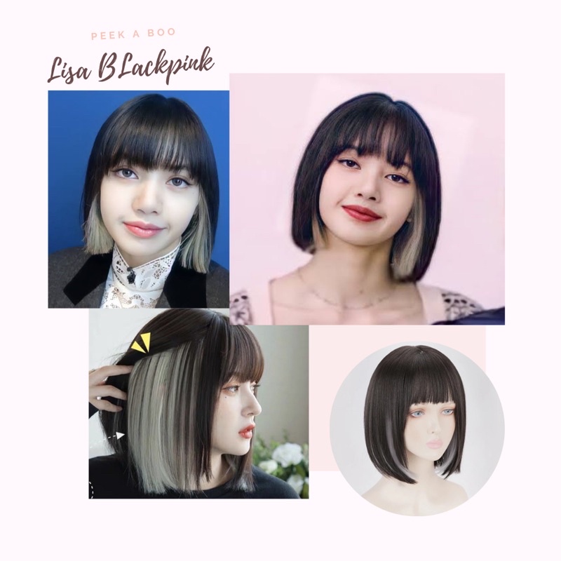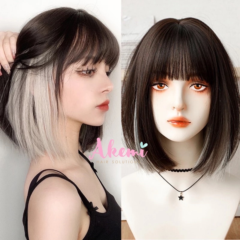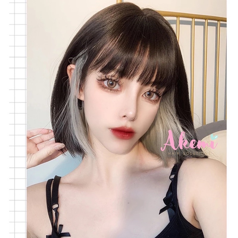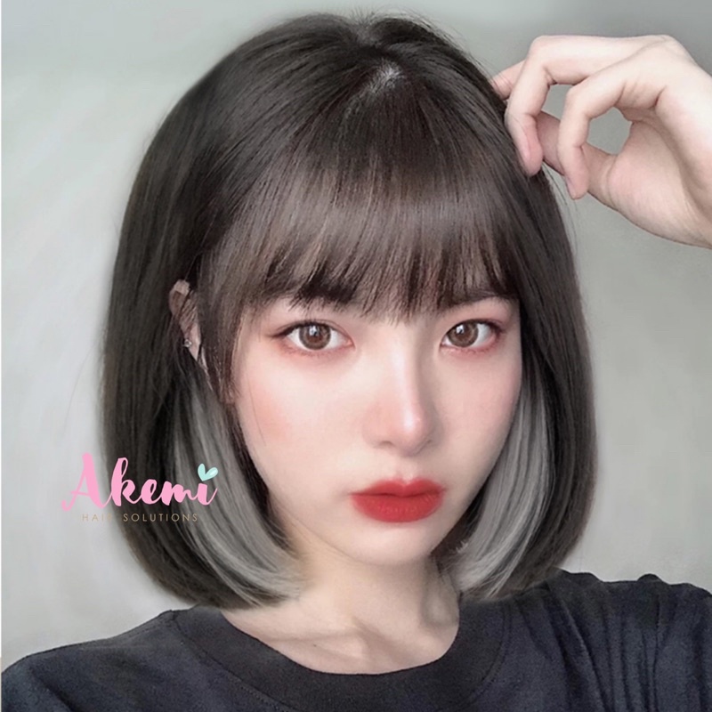 WIG AKEMI PONI TIPIS / WIG PENDEK LISA BLACKPINK BOB - PEEK A BOO - BLACK SILVER GREY