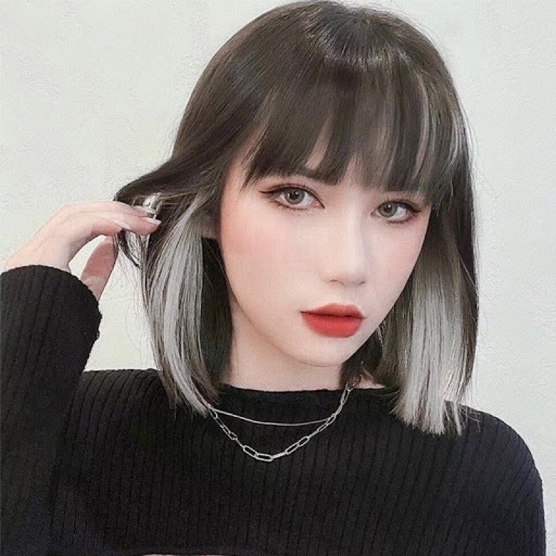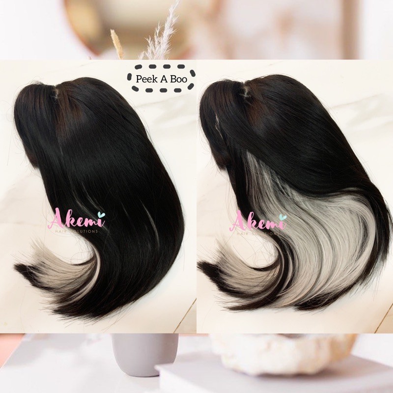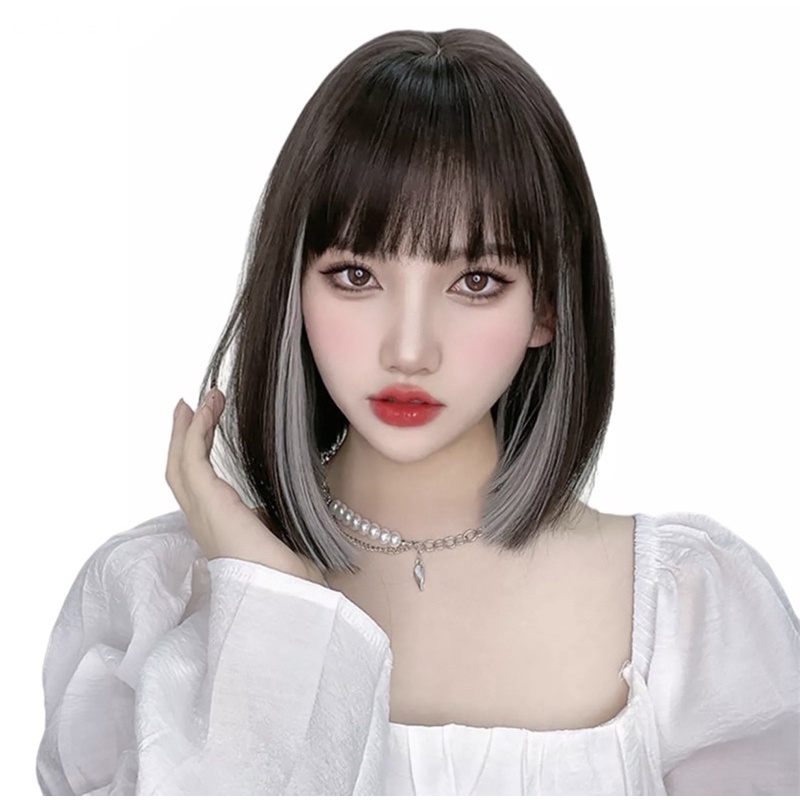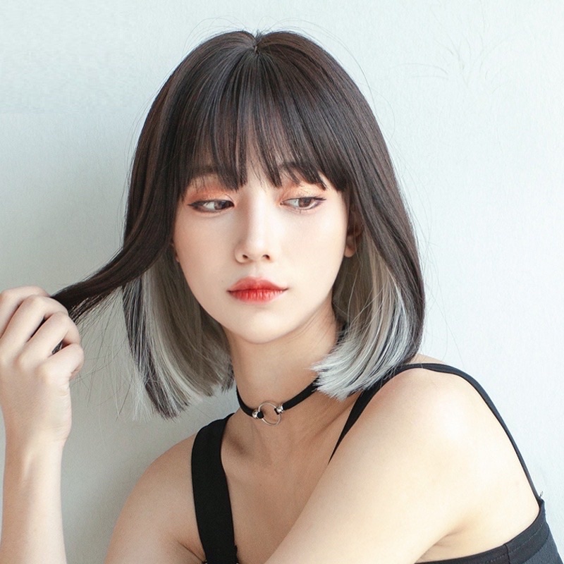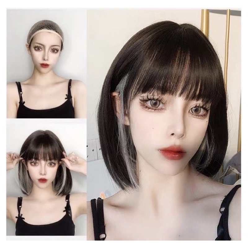 WIG AKEMI PONI TIPIS / WIG PENDEK LISA BLACKPINK BOB - PEEK A BOO - BLACK SILVER GREY