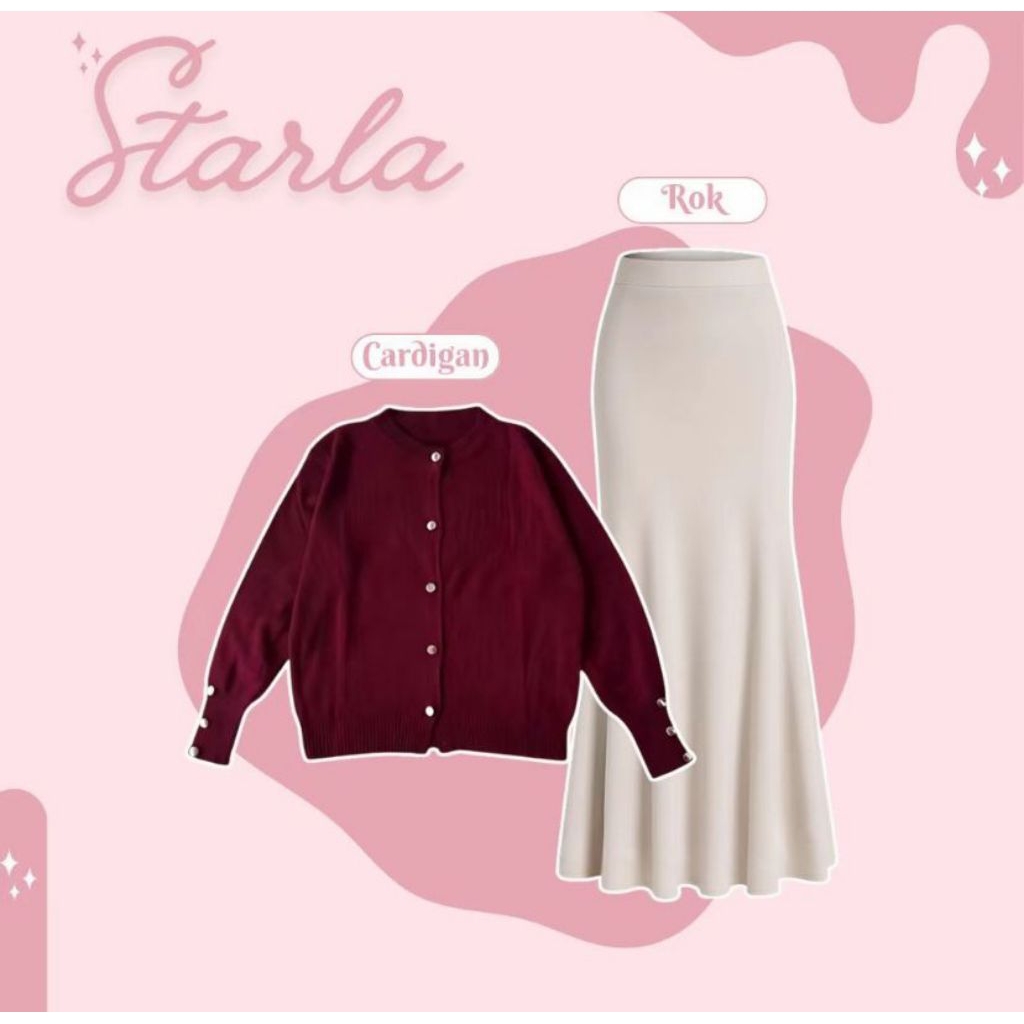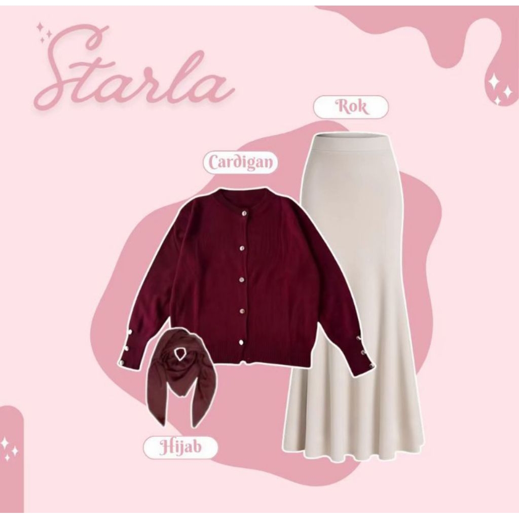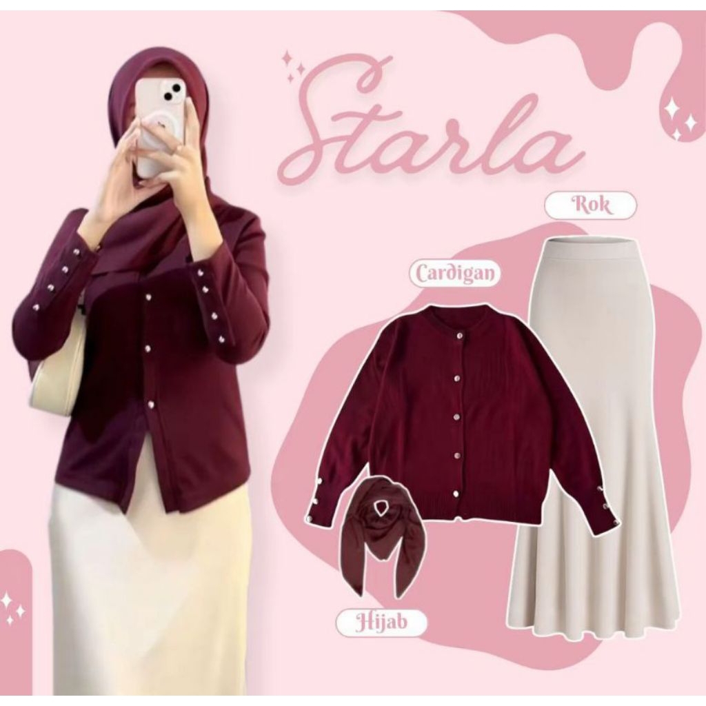 Starla Outfit Setelan Wanita / One Set Wanita / Cardigan Kancing + Hijab Paris + Rok Duyung / Setelan Wanita / Setelan Wanita Kekinian / Ootd Wanita Set / Baju One Set Wanita / Setelan Rok Wanita / One Set Rok / Baju Satu Setelan Wanita / Atasan Wanita