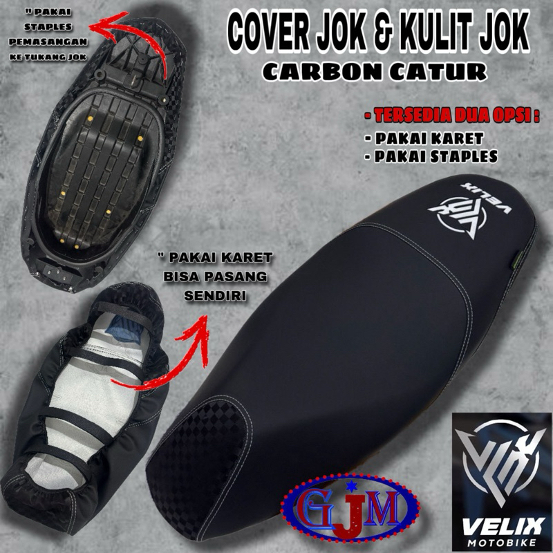 KULIT JOK MOTOR & COVER JOK MOTOR X CARBON KOTAK CATUR (VELIX) SUDAH DI JAHIT TINGGAL PASANG