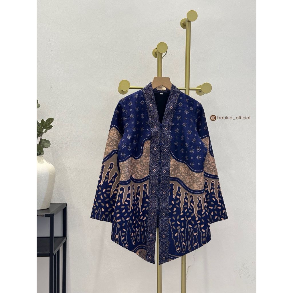 BATIKID OFFICIAL - Aradhana Navy Batik - Atasan Wanita Premium Kerah V