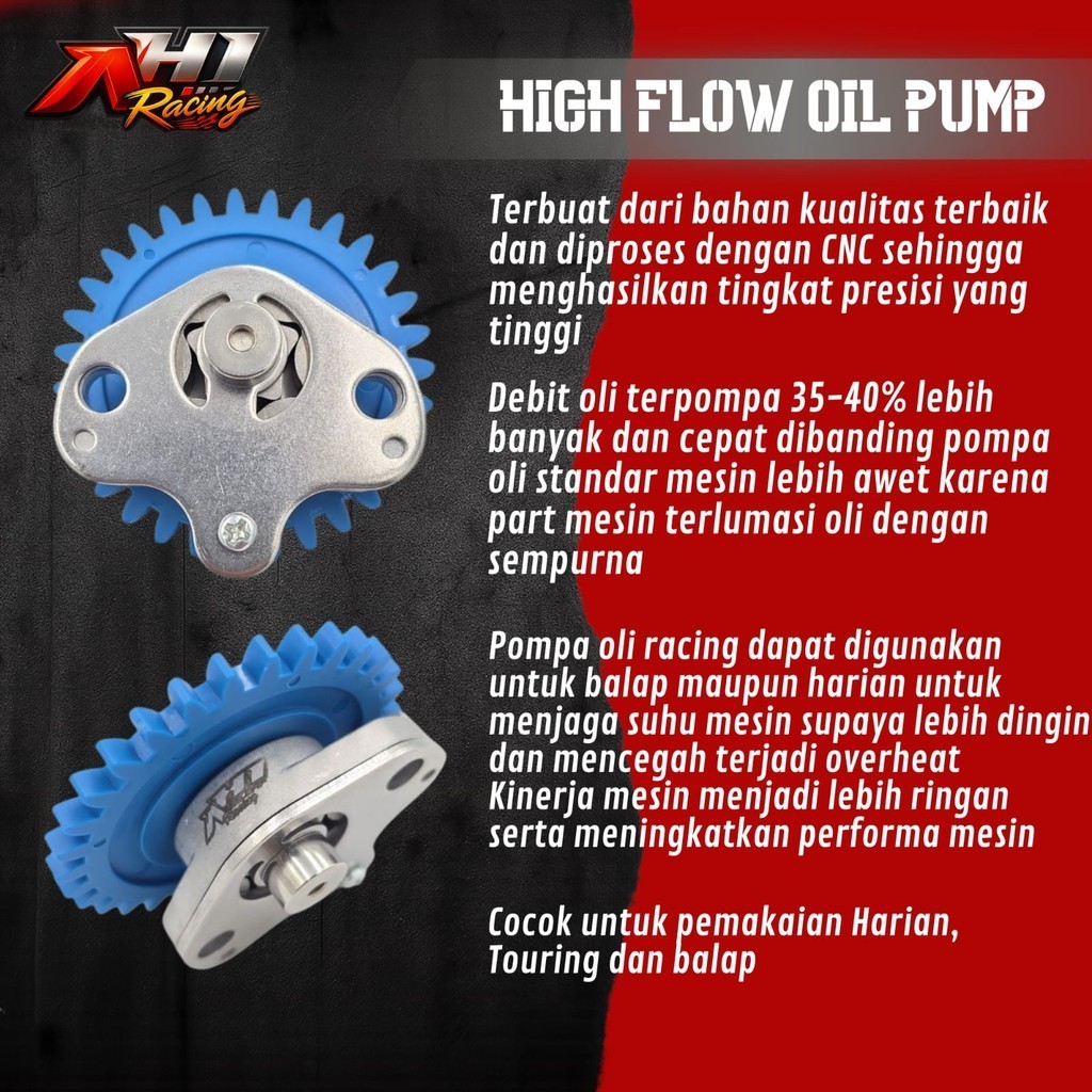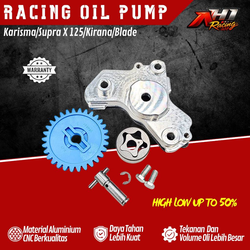 Pompa Oli Racing Oil Pump Hi Flow AH1 Racing Karisma Grand Supra X125 Kirana Blade 125 FI Jupiter Z Z1 Z Robot Vega R ZR Vega Force Mio Sonic New CB150 CBR150R Supra GTR Jupiter MX135 4S 5S Vixion MX King Xabre R15 V1 V2 V3 Revo Blade Win WR155 Vario PCX