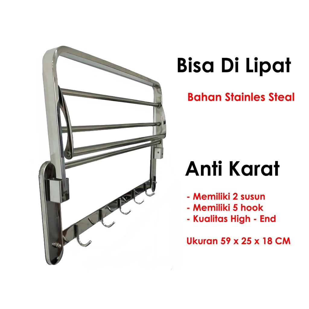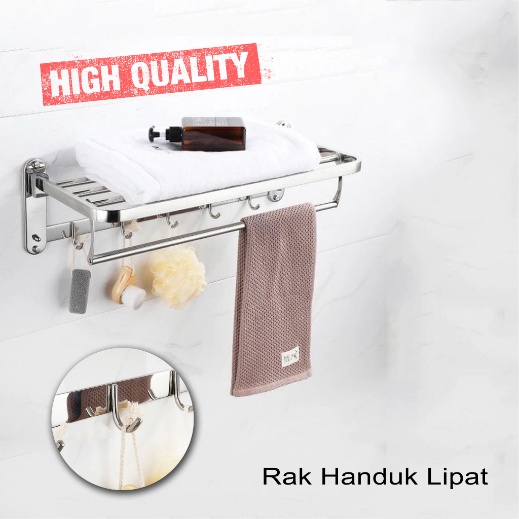 Rak Handuk Kamar Mandi Lipat Gantungan Tempat Baju Dinding Toilet