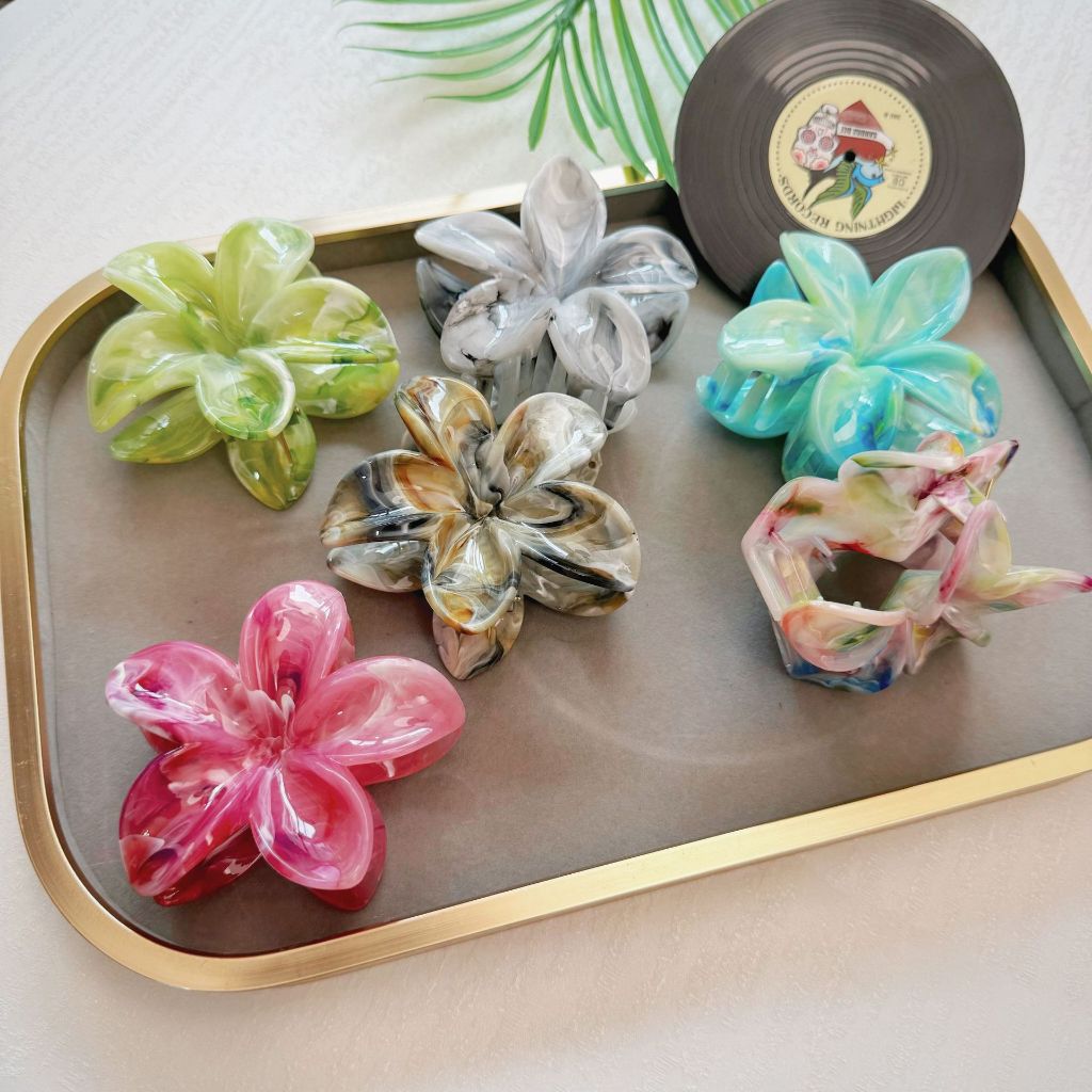 JR-A014 Jepit Rambut Model Bunga Kamboja Khas Bali Dengan Marble Pattern