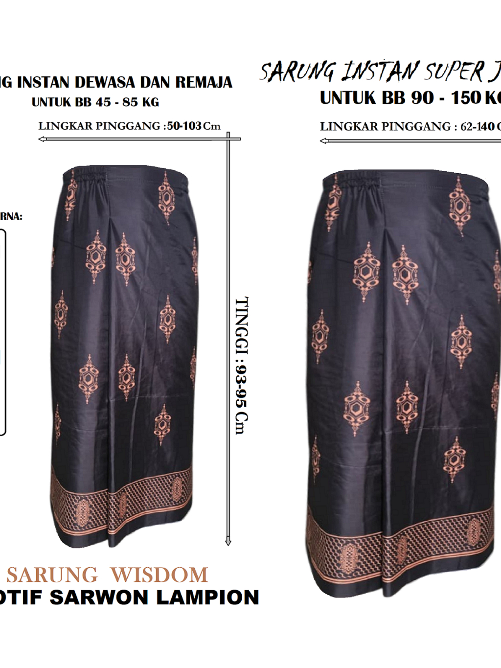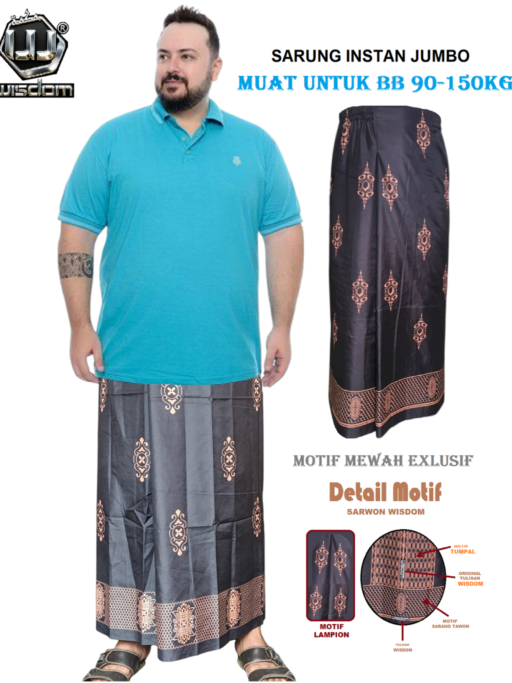 Sarung Instan Dewasa Jumbo Muat Untuk BB 90-145kg Motif Premium Mewah Tampil Elegan Bahan Halus