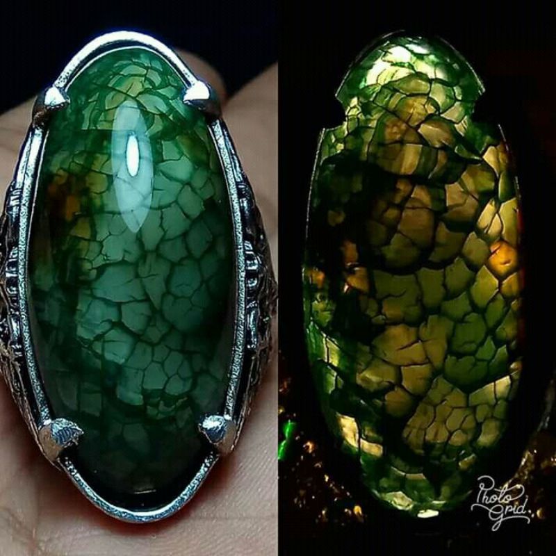 Cincin Batu Akik Pandan Sisik Naga Hijau