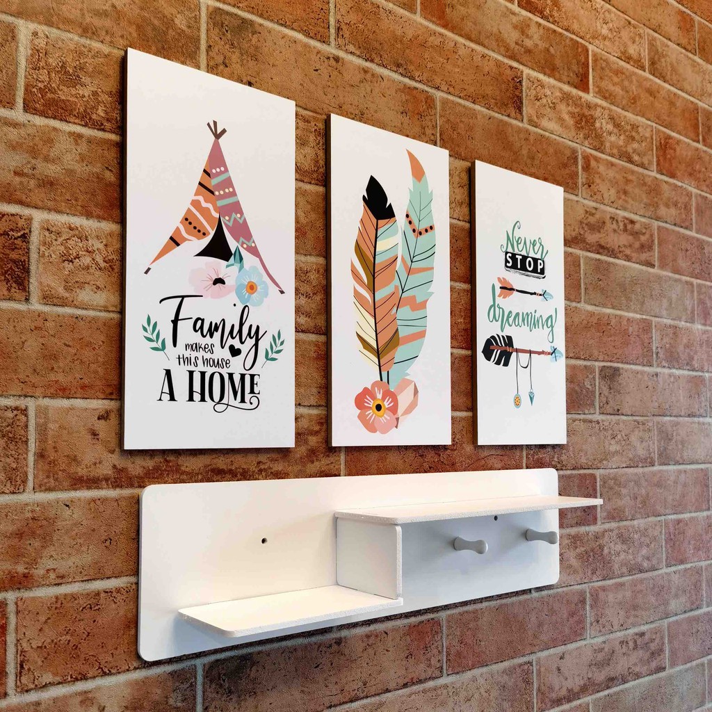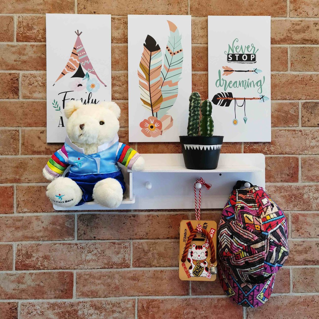 Rak dinding vintage MINIMALIS (dengan 3buah hook gantungan ) rak dinding gantung ambalan dinding