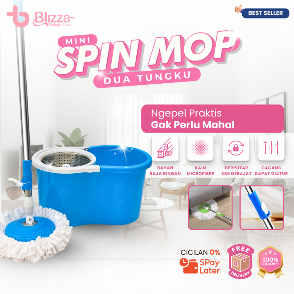 Mini Mop Pel Putar Dua Tungku - Mini Spin Mop 2 Tungku Dengan Peras Otomatis | Mama Blizza