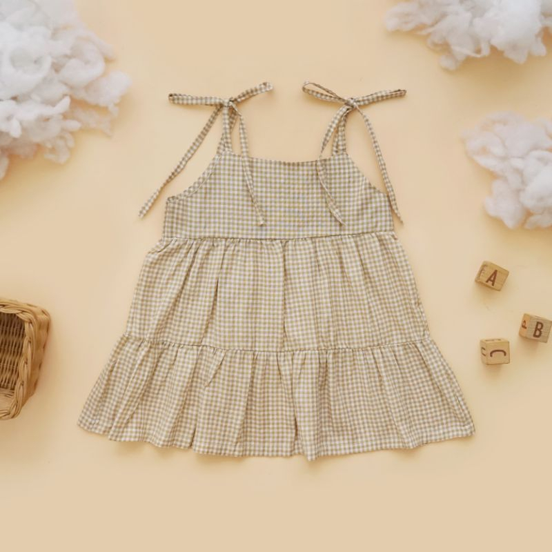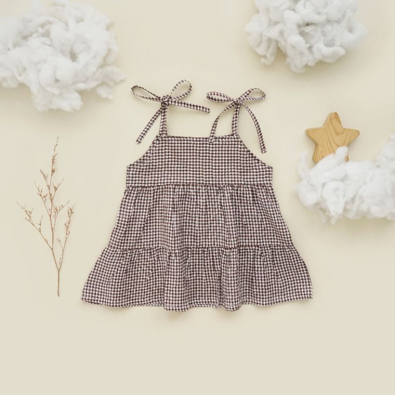 RB Elrasyakids Ellia Dress Tali Bayi Outer bayi Perempuan Dress Bayi perempuan kotak kotak Outer
