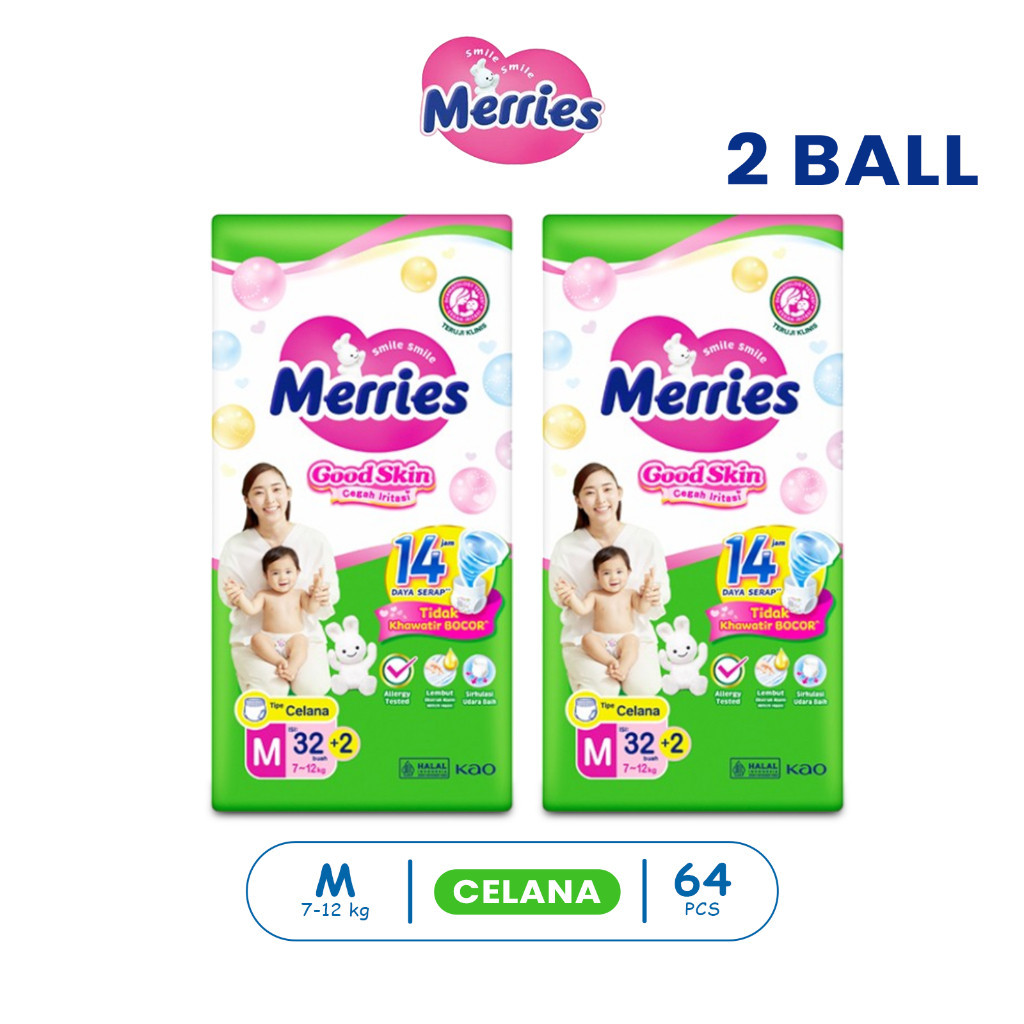 Merries Good Skin 2 Ball Ukuran NB - XXL Popok Bayi Celana