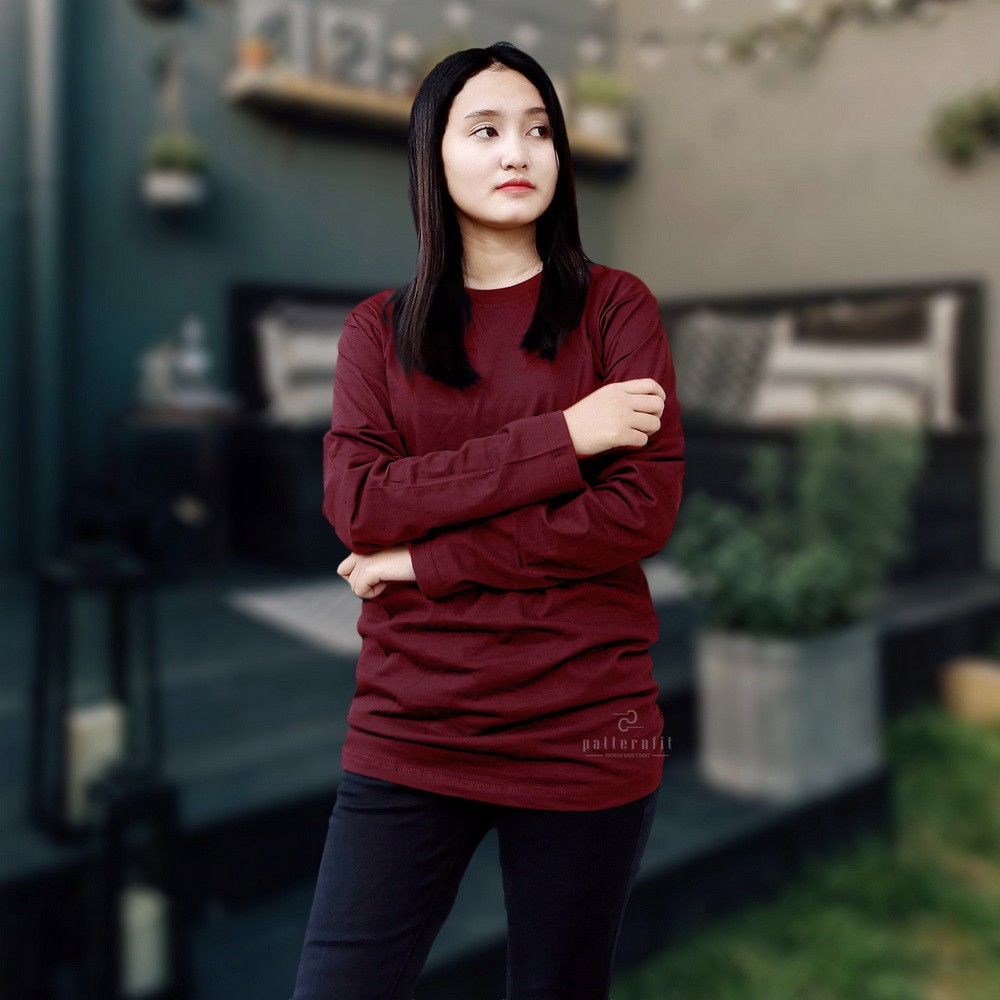 KAOS WANITA LENGAN PANJANG MARUN SPESIAL 100% COTTON COMBED 30S
