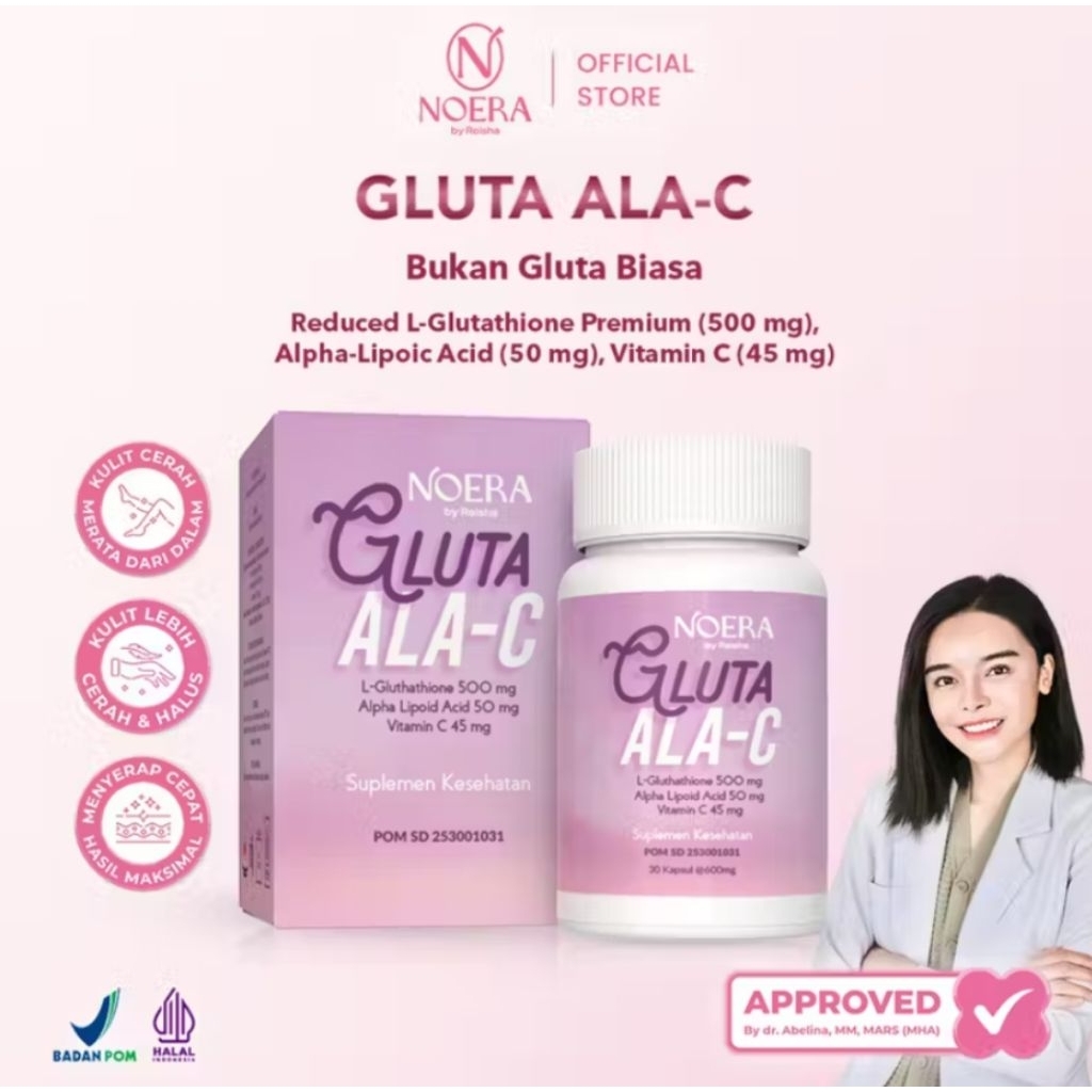 Noera Gluta ALA-C 30 Kapsul - Suplemen L-Glutathione, Antioksidan, Mencerahkan Kulit