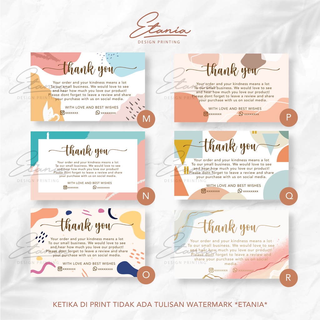 Thank you card / thankyou card custom / thank you card online shop small bisnis / kartu ucapan