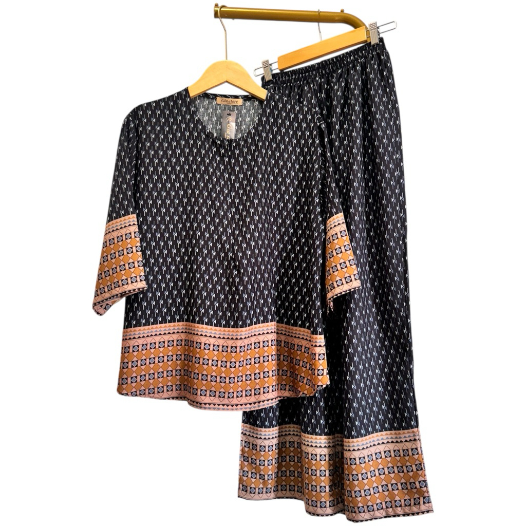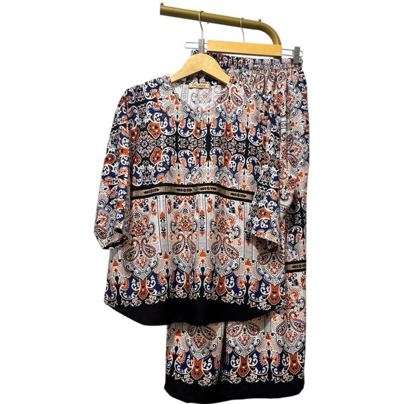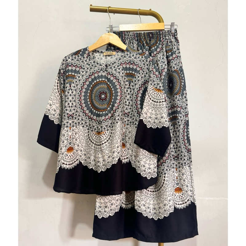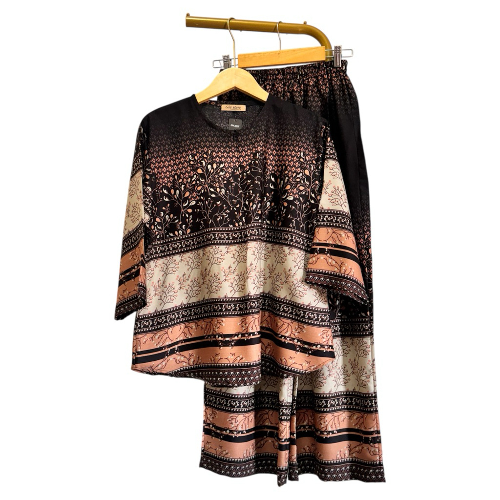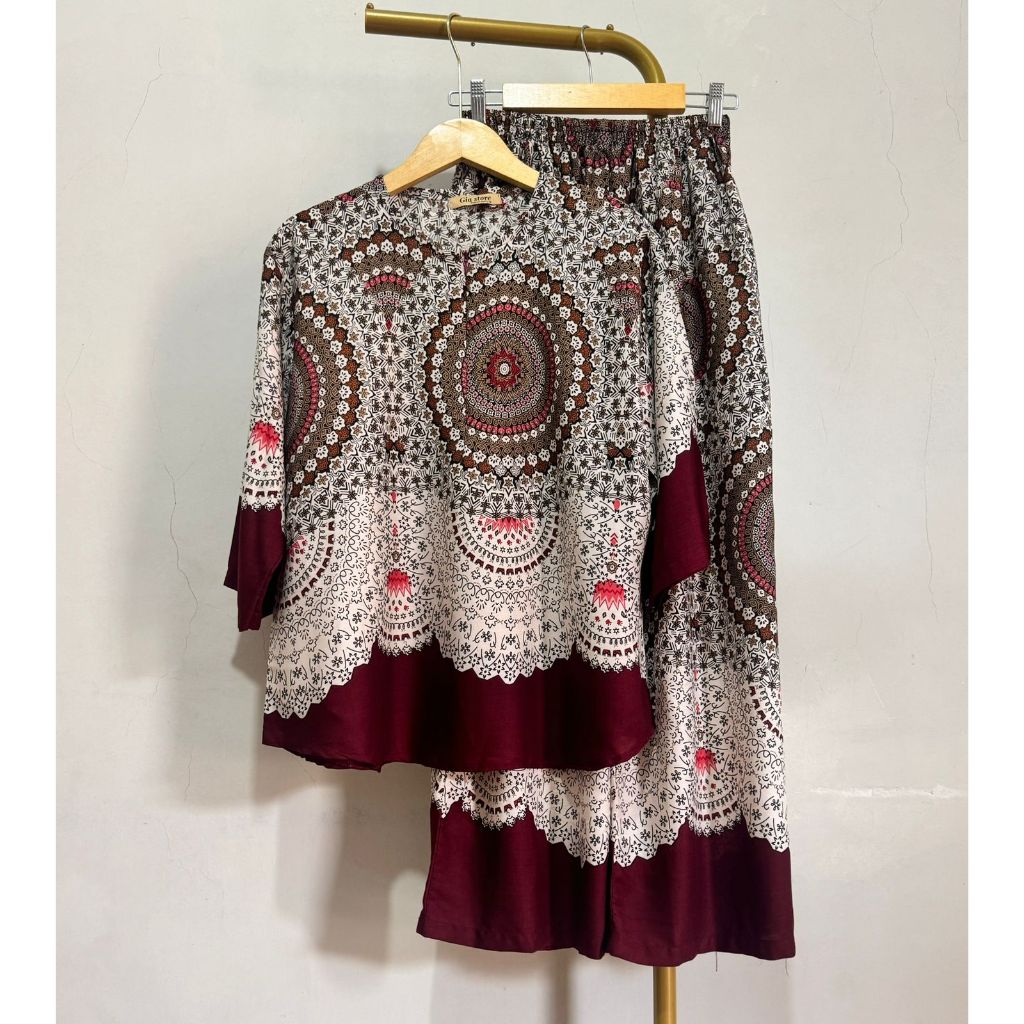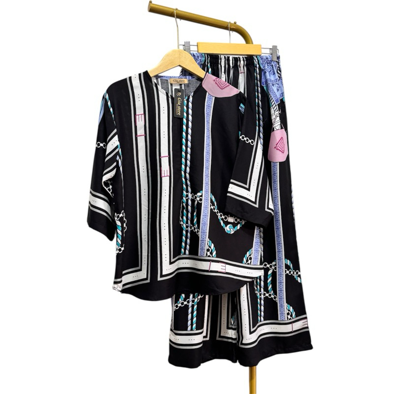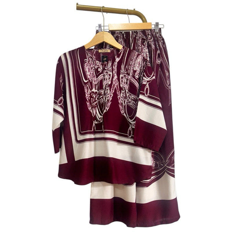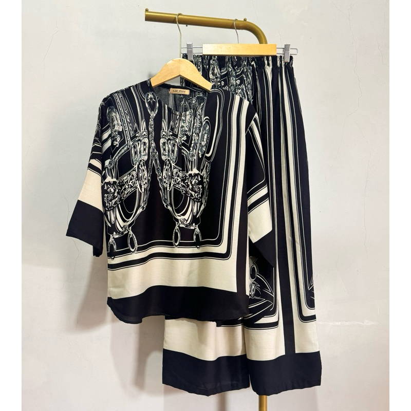 NJU One set cantik elegan mewah bluse ziper cenala kulot