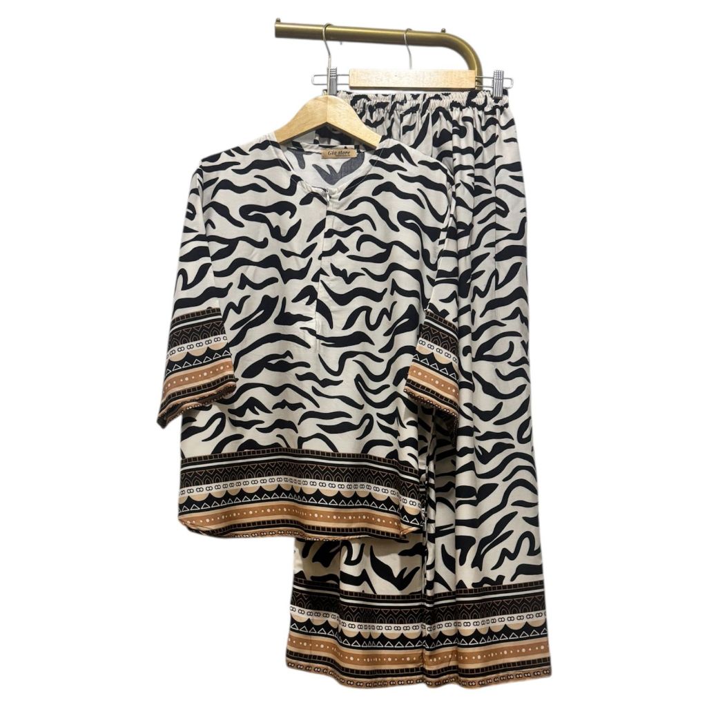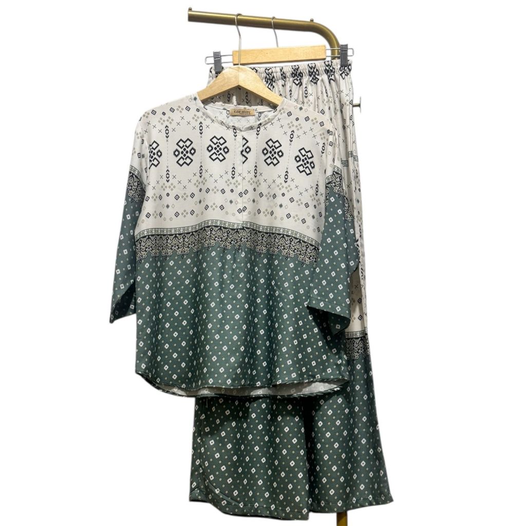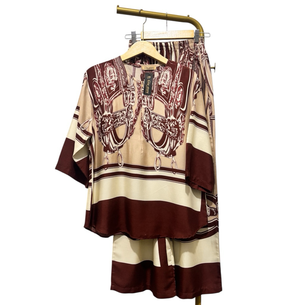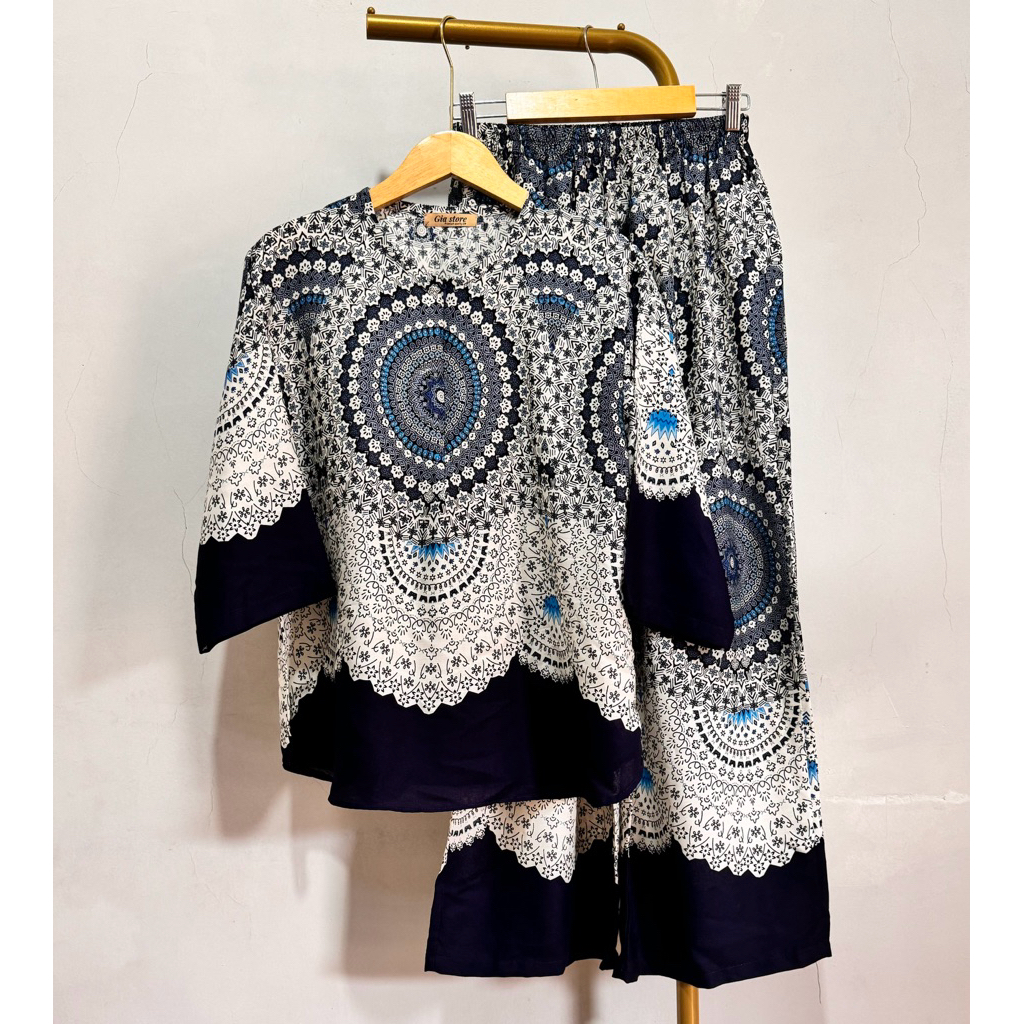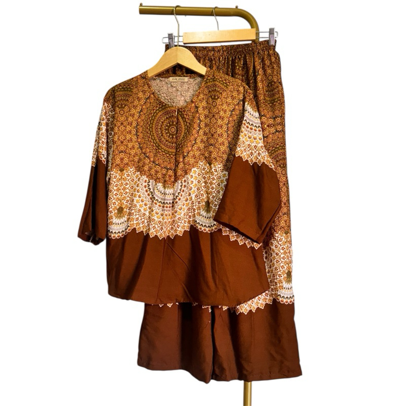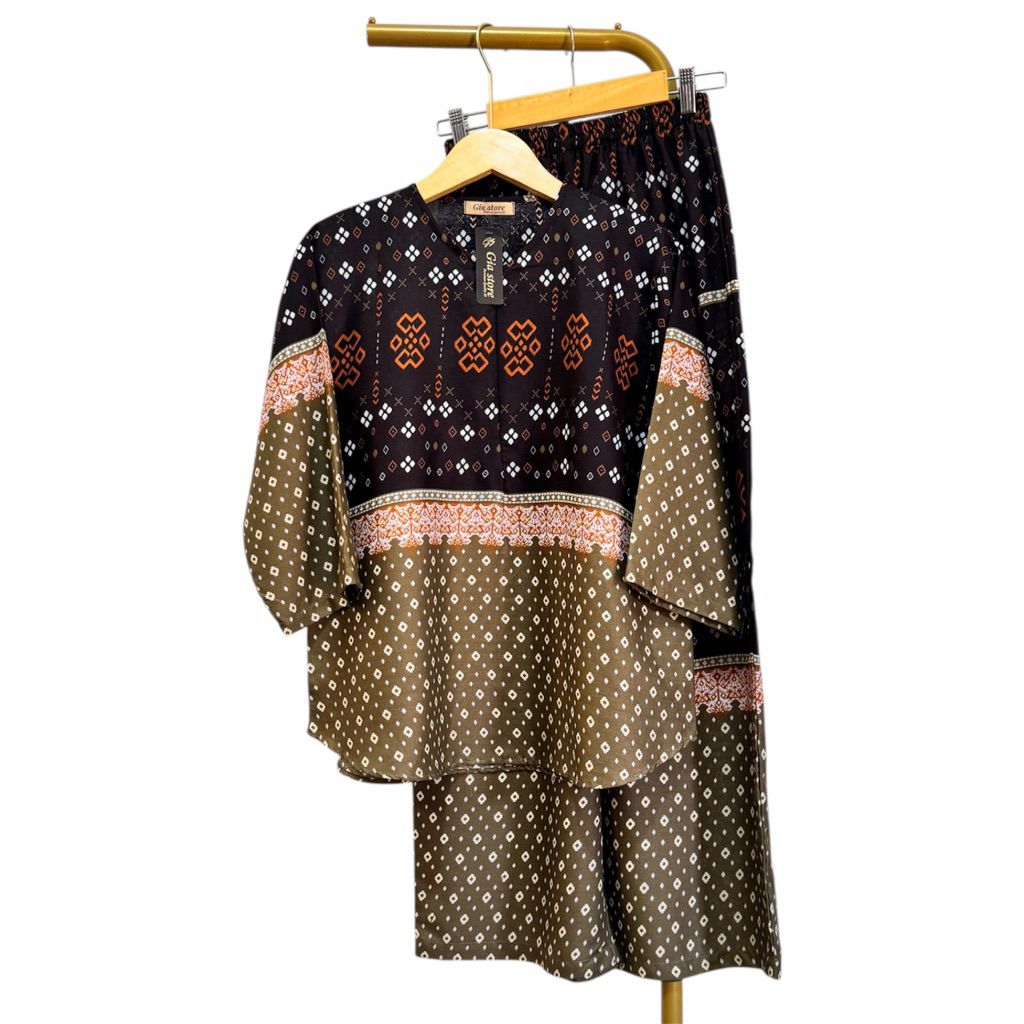 NJU One set cantik elegan mewah bluse ziper cenala kulot