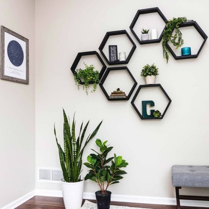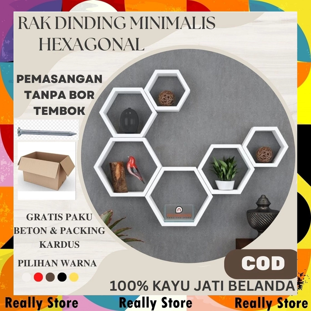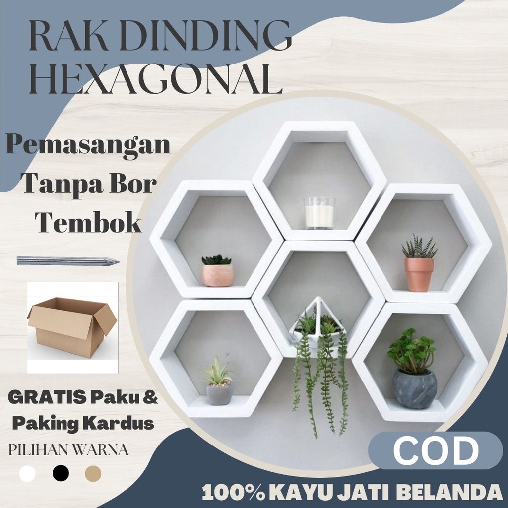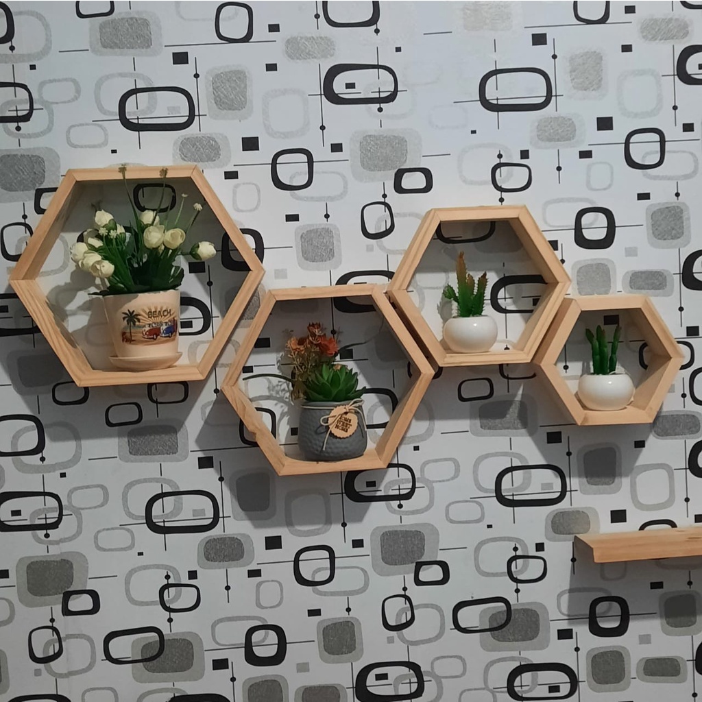 Hiasan Dinding Aesthetic Rak Hexagonal Hiasan Dinding Gantung Minimalis Kayu Dekorasi Dinding